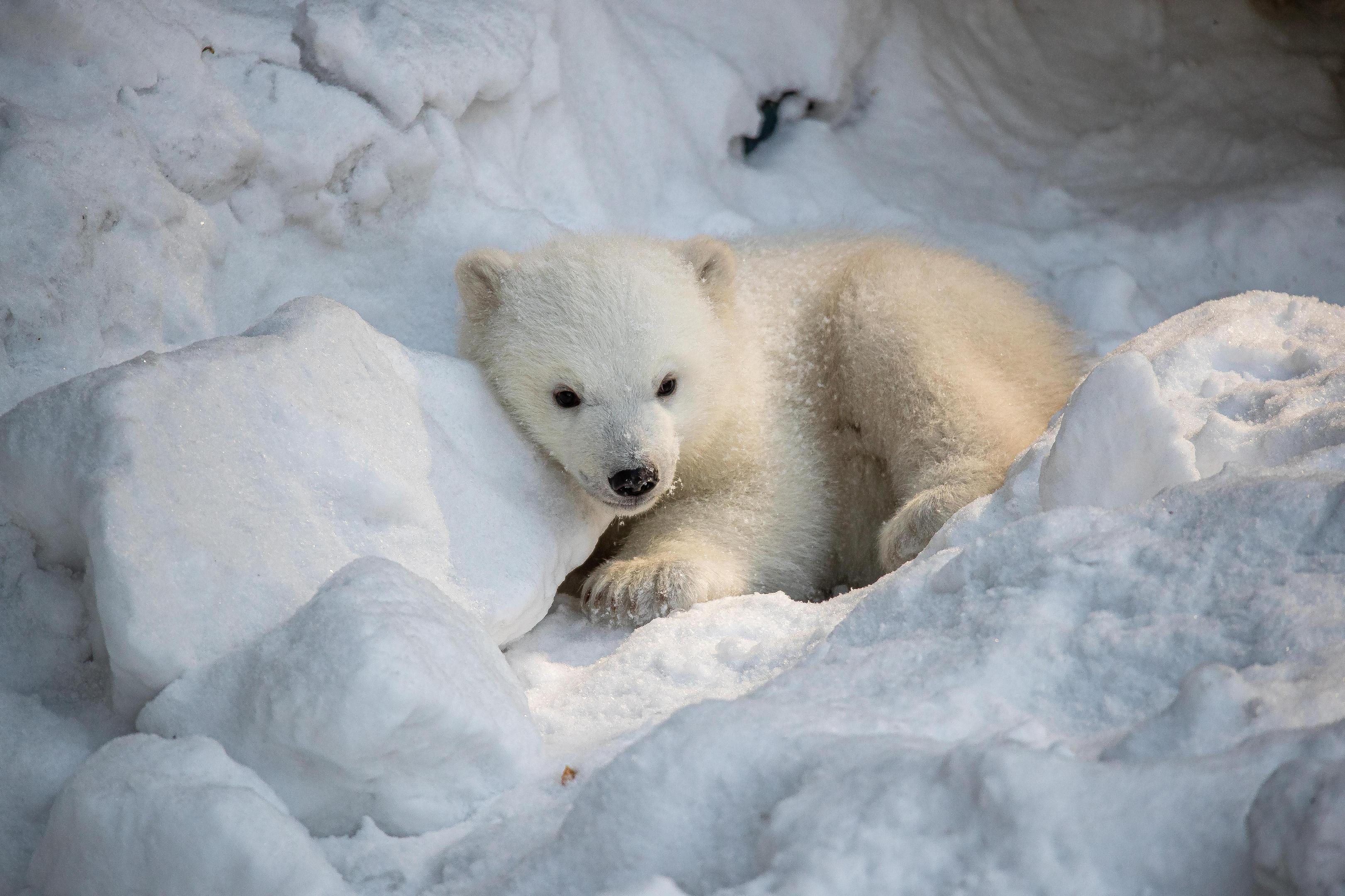 Зимой молодые медвежата почти неотличимы от снежного покрова.