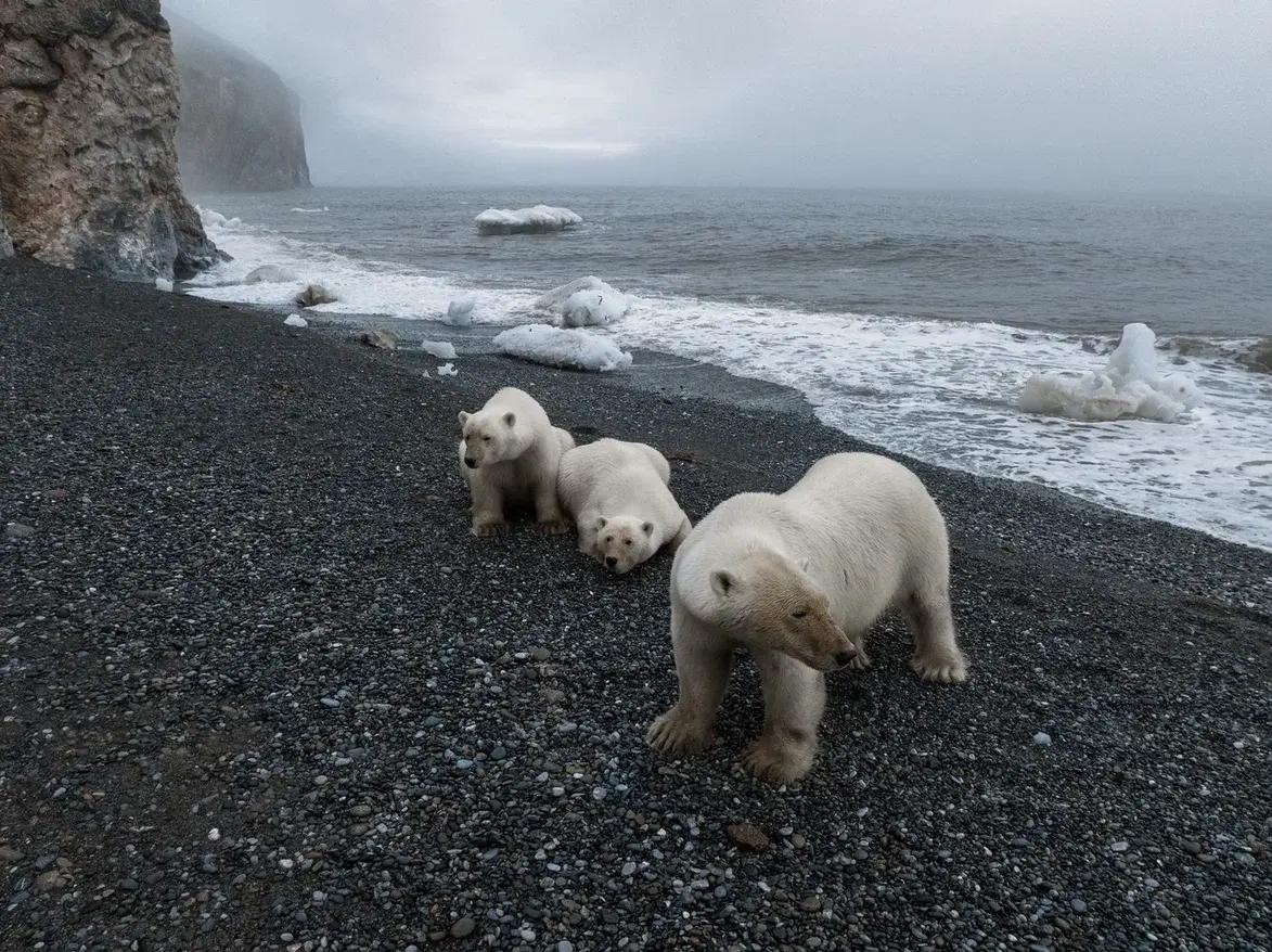 Новосибирский фотограф впервые встретил белых медведей на мысе Дежнева. Чтобы сделать снимки, ему пришлось скрываться в маяке.