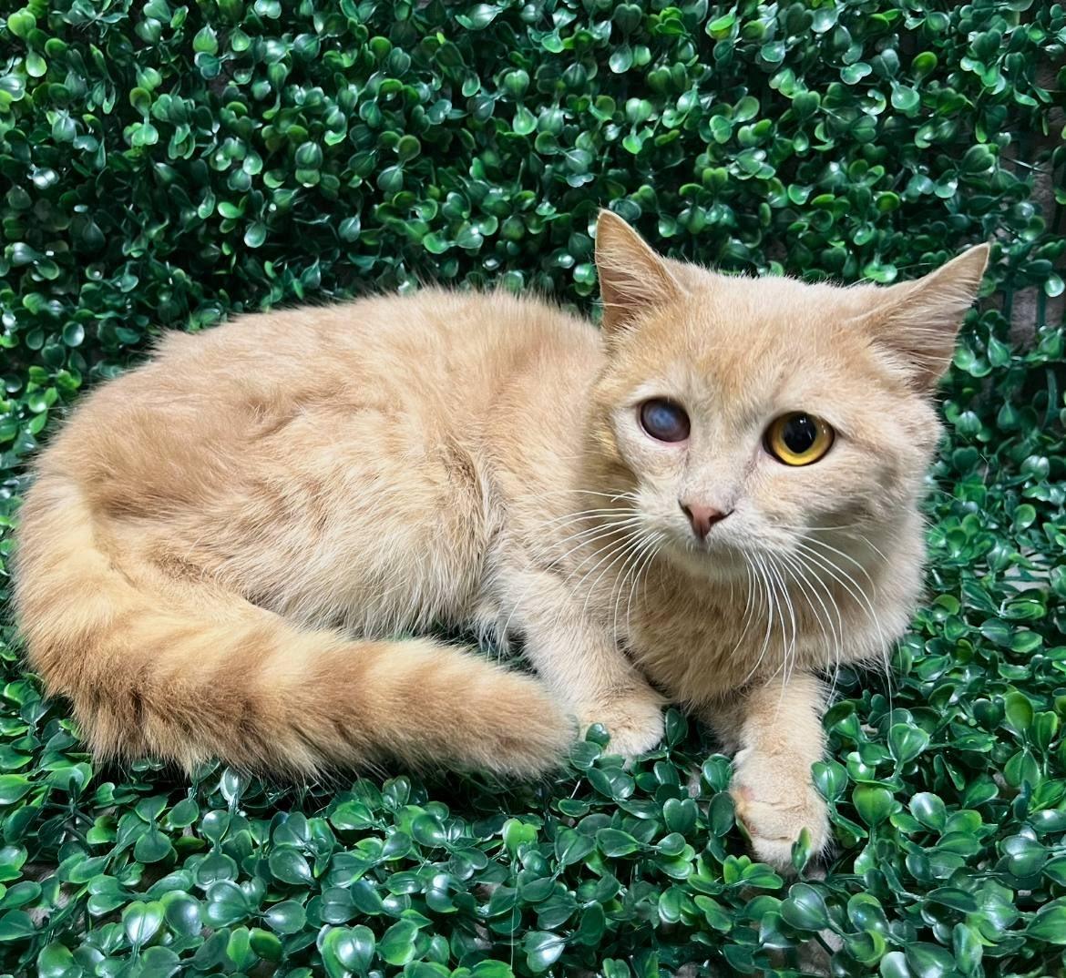 Персиковый кот с бельмом на глазу ищет любящую семью в Новосибирске.