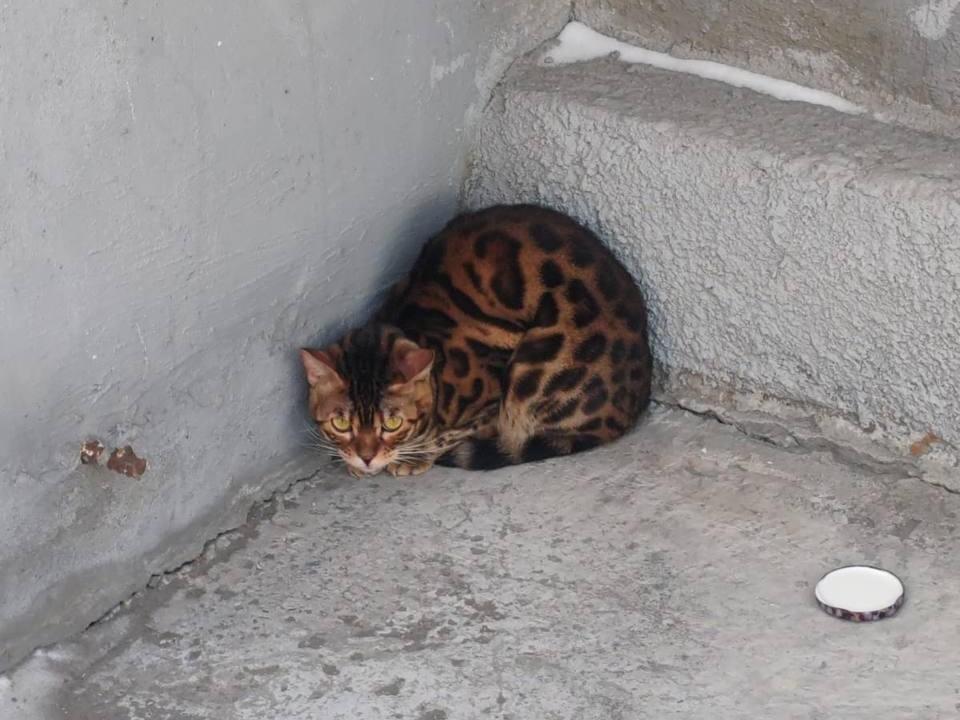 Бенгальскую кошку обнаружили в подъезде жилого дома по адресу улица Одоевского, 1/8 в Новосибирске.