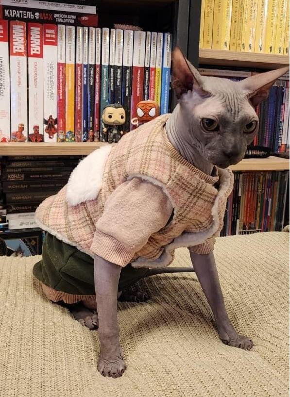 Этот кот в морозный день с удовольствием показывает свой новый свитер.