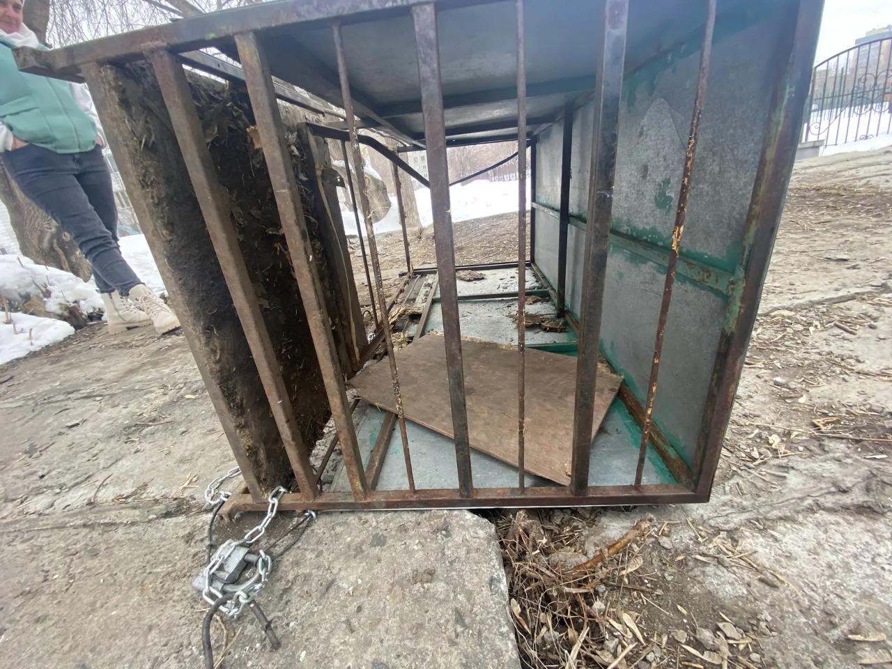 Ловушка для животных была повреждена: у нее сломаны стены.