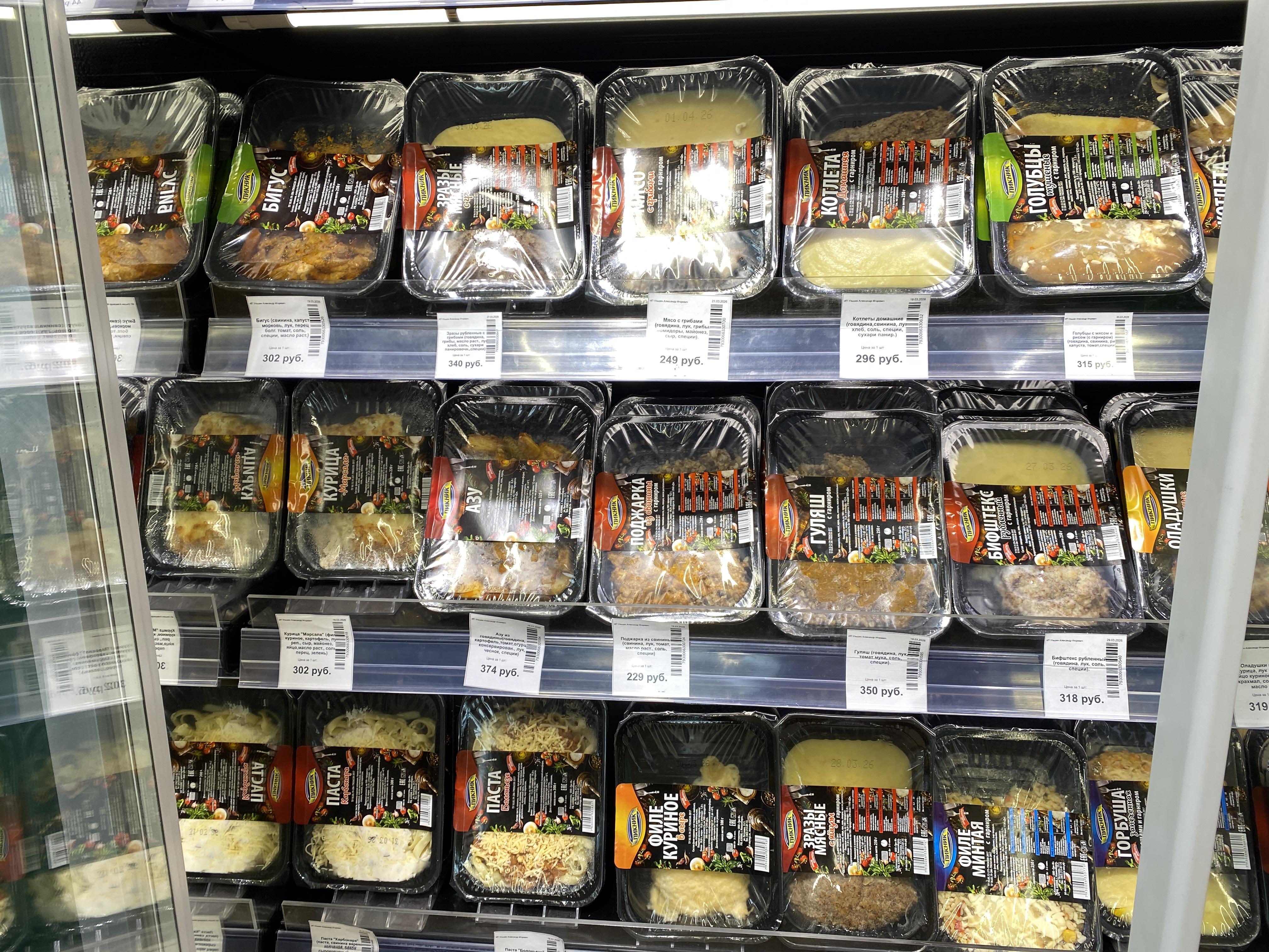 В торговом зале установлен холодильник с готовыми блюдами