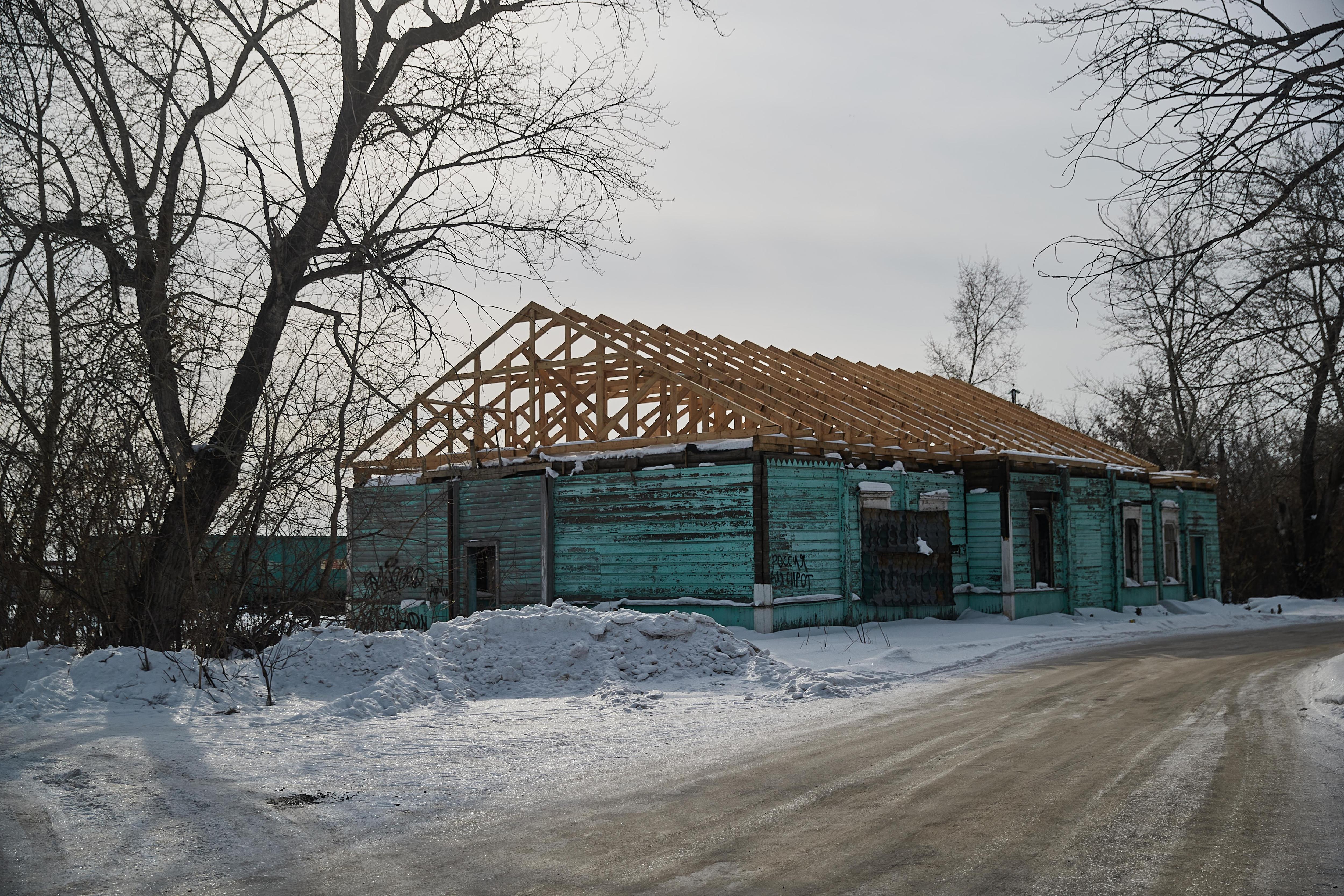На фото — здание старинного вокзала станции Каинск-Барабинский после пожара и начала реконструкции в 2025 году