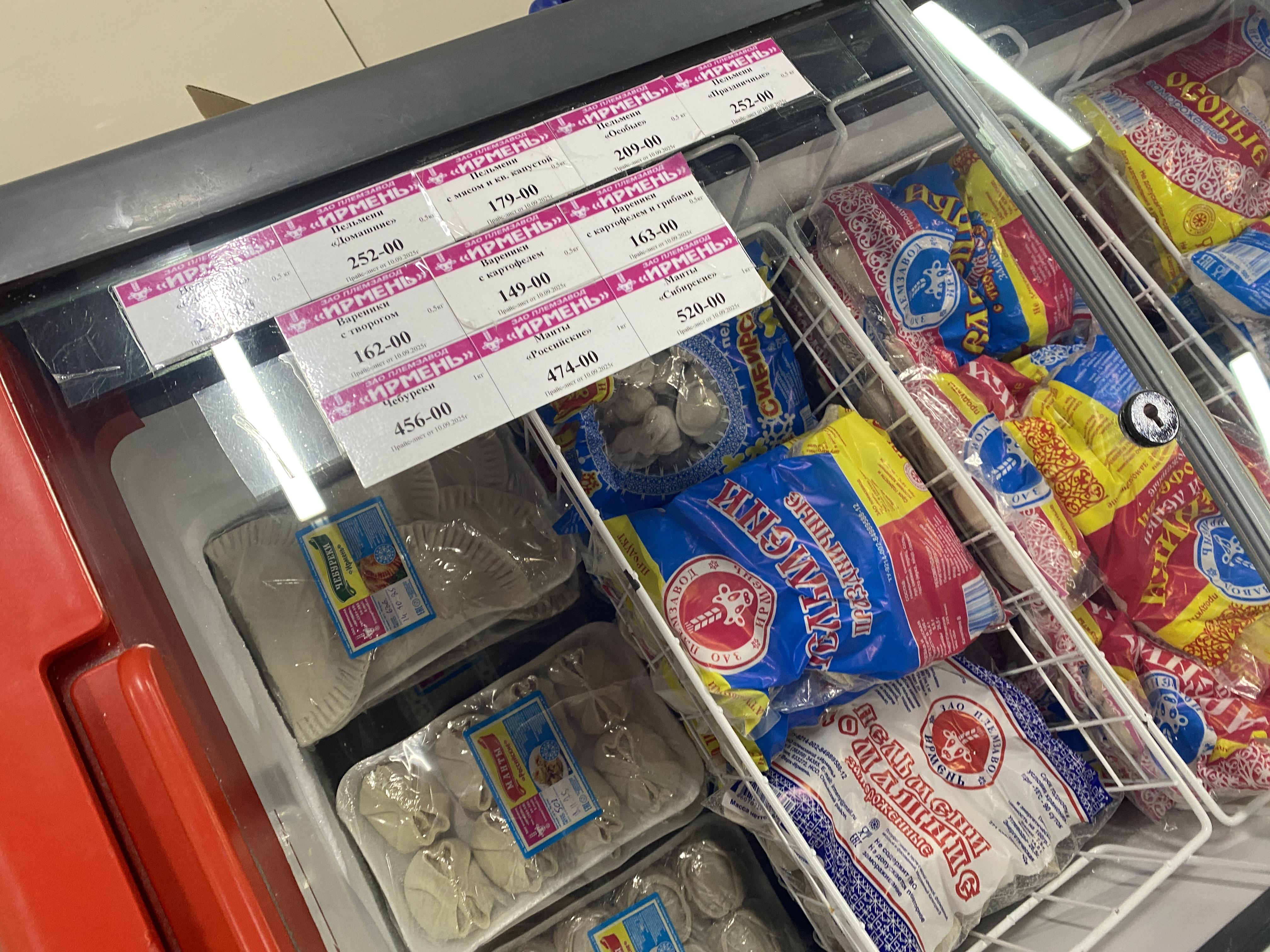 В этой точке представлен широкий ассортимент «Ирмени», включая пельмени.