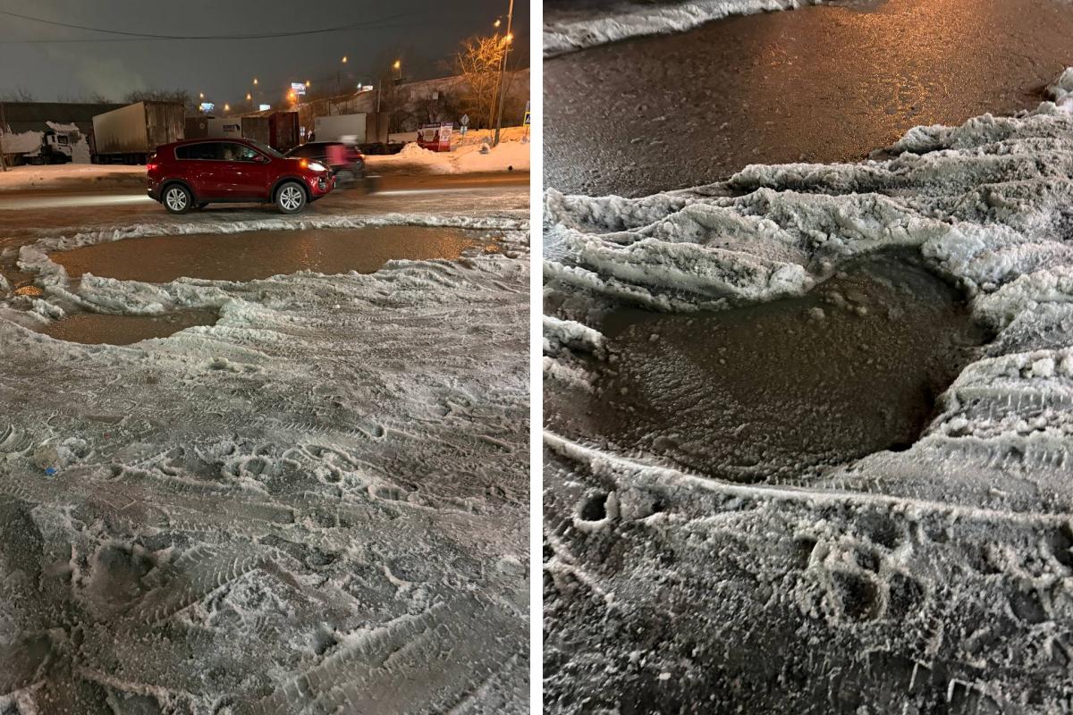 Водная преграда образовалась у остановки «Речной колледж» рядом с жилым комплексом «Аквамарин».