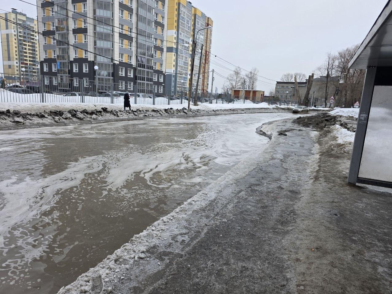 После резкого потепления множество дорог и тротуаров Новосибирска оказались затопленными. Фото- и видеоматериалы наглядно показывают масштабы проблемы.
