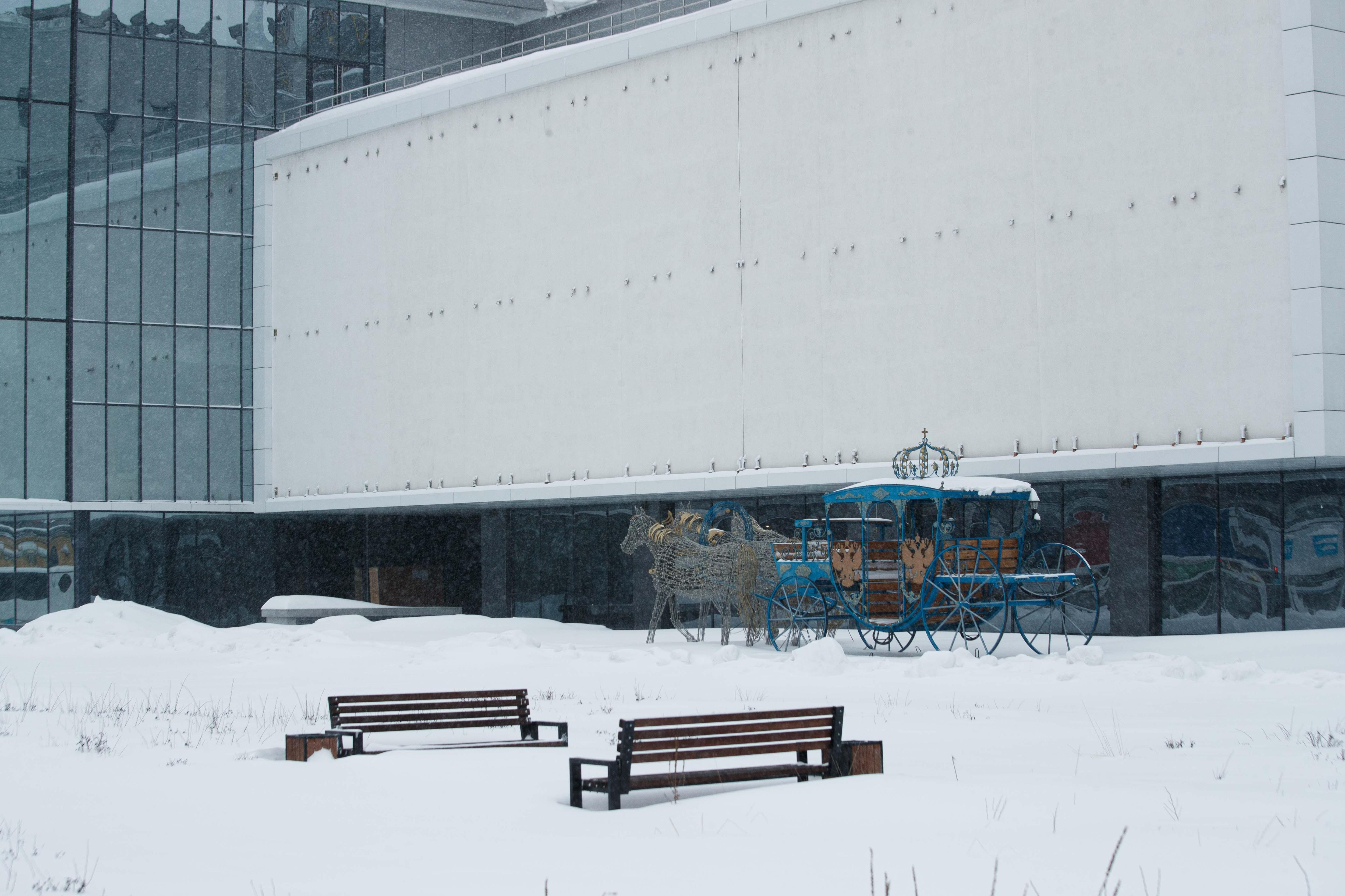 Возле гостиницы обустроили сквер, где уже разместили новогоднюю фотозону.