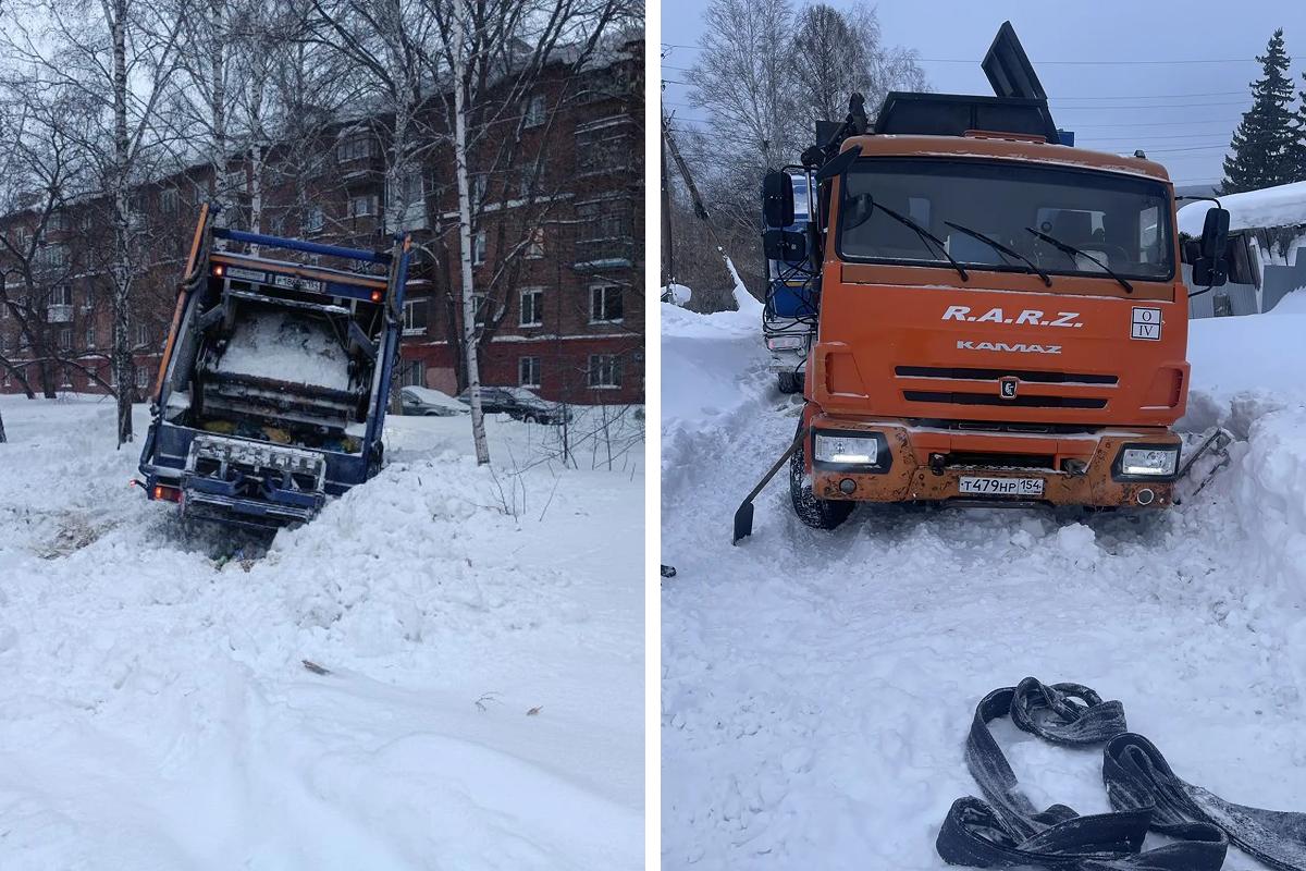 Мусоровозы застревают в сугробах на неочищенных улицах