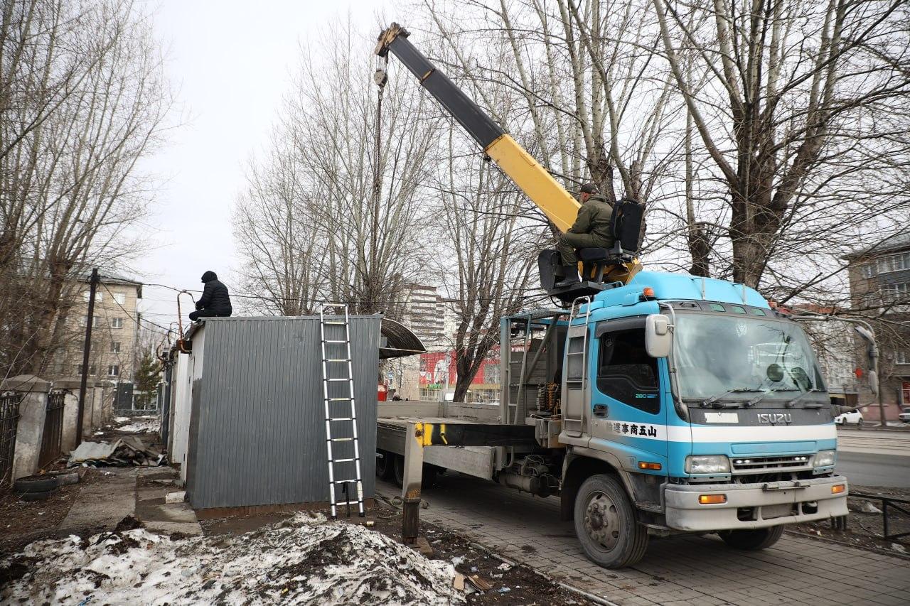Незаконный киоск демонтировали на улице Трикотажной в Новосибирске