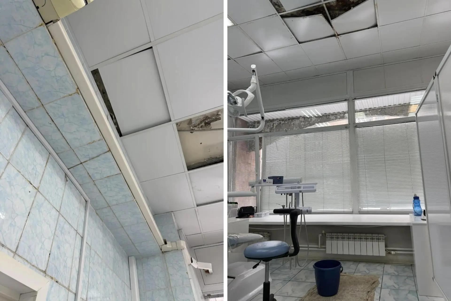 Внутренний вид детской стоматологии, пострадавшей от протечек крыши