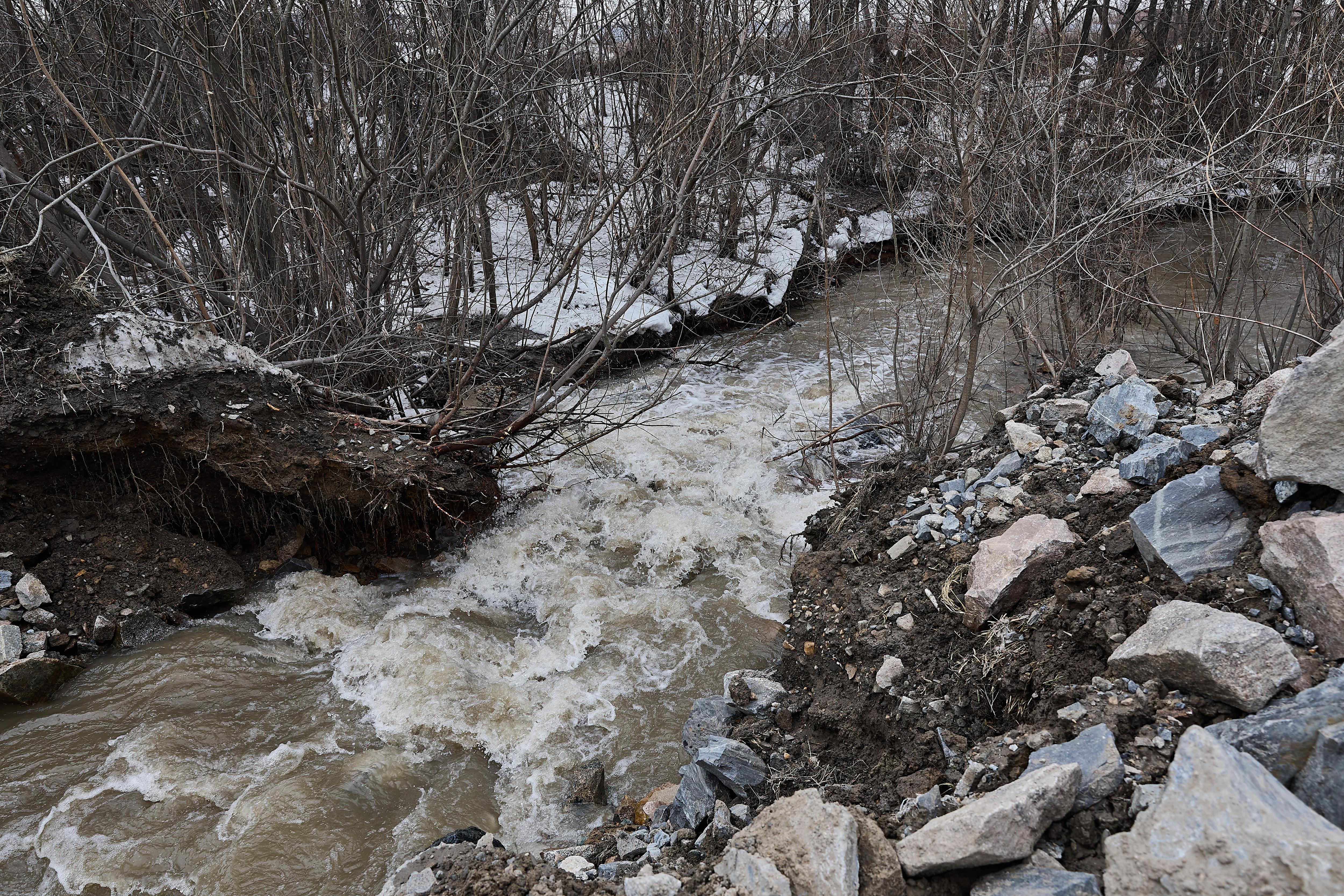 Траншею для отвода воды из реки Плющиха возле Бугринского моста в Новосибирске вырыли 5 апреля.