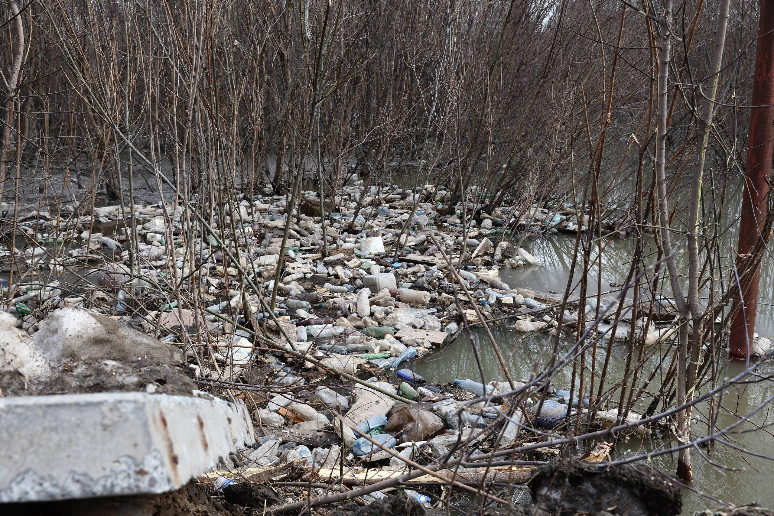 Чтобы предотвратить подтопление домов, у Бугринского моста вырыли траншею, но теперь там образовались кучи отходов.