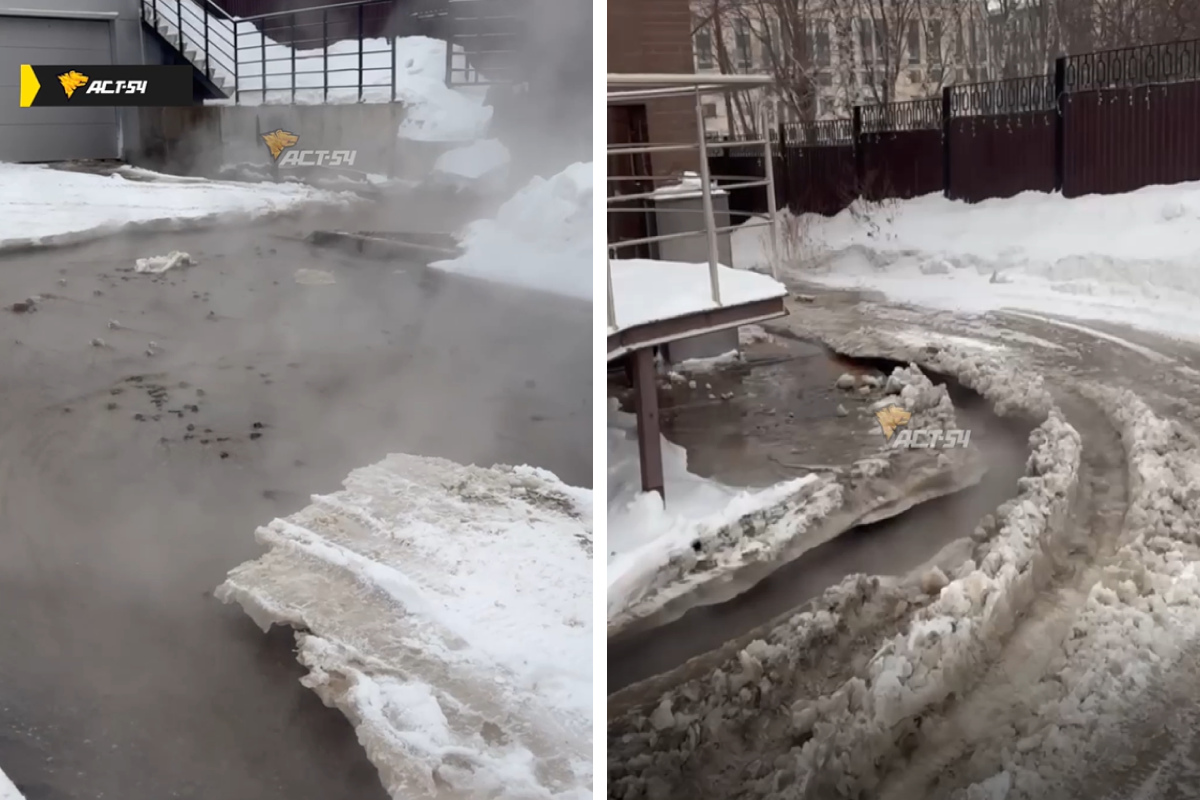 Утром 7 февраля в Новосибирске произошла авария на теплосети, в результате которой возле дома по адресу Сакко и Ванцетти, 11, образовался поток кипятка.