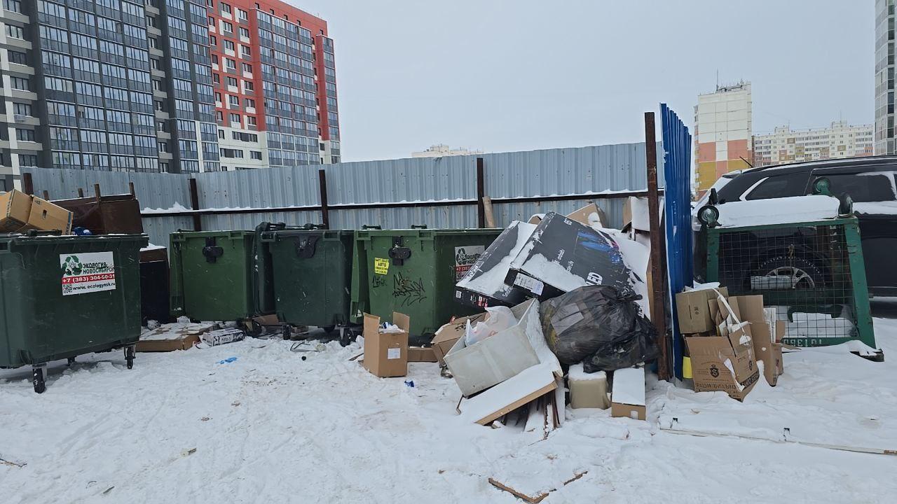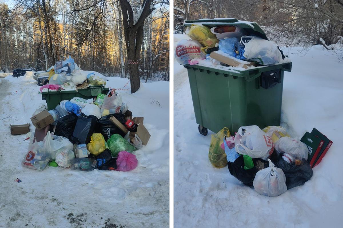 На Кошурникова, 22 в Дзержинском районе отходы не убирали неделю, и они замёрзли. По данным «САХ», вывоз произвели 28 декабря в 09:28.