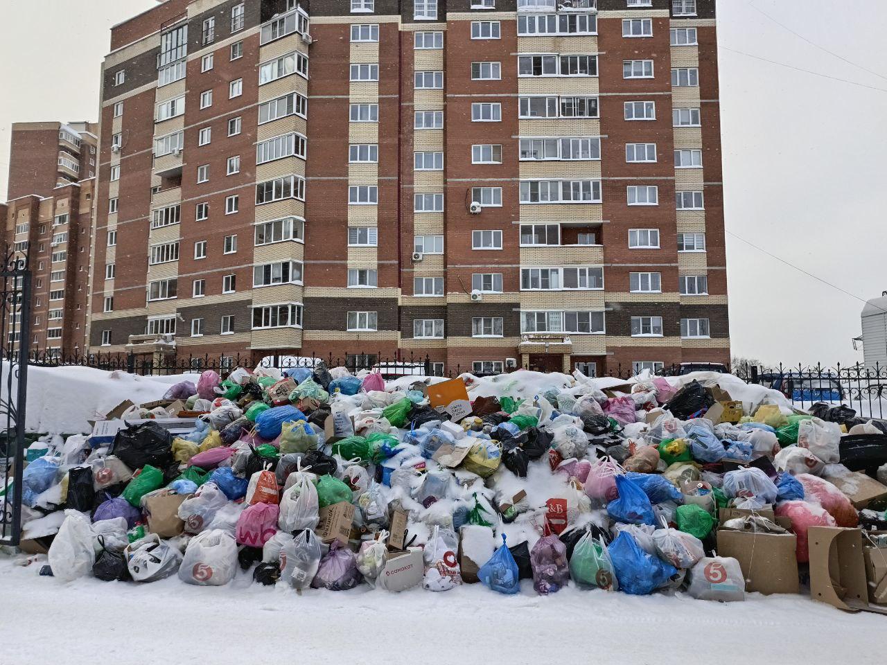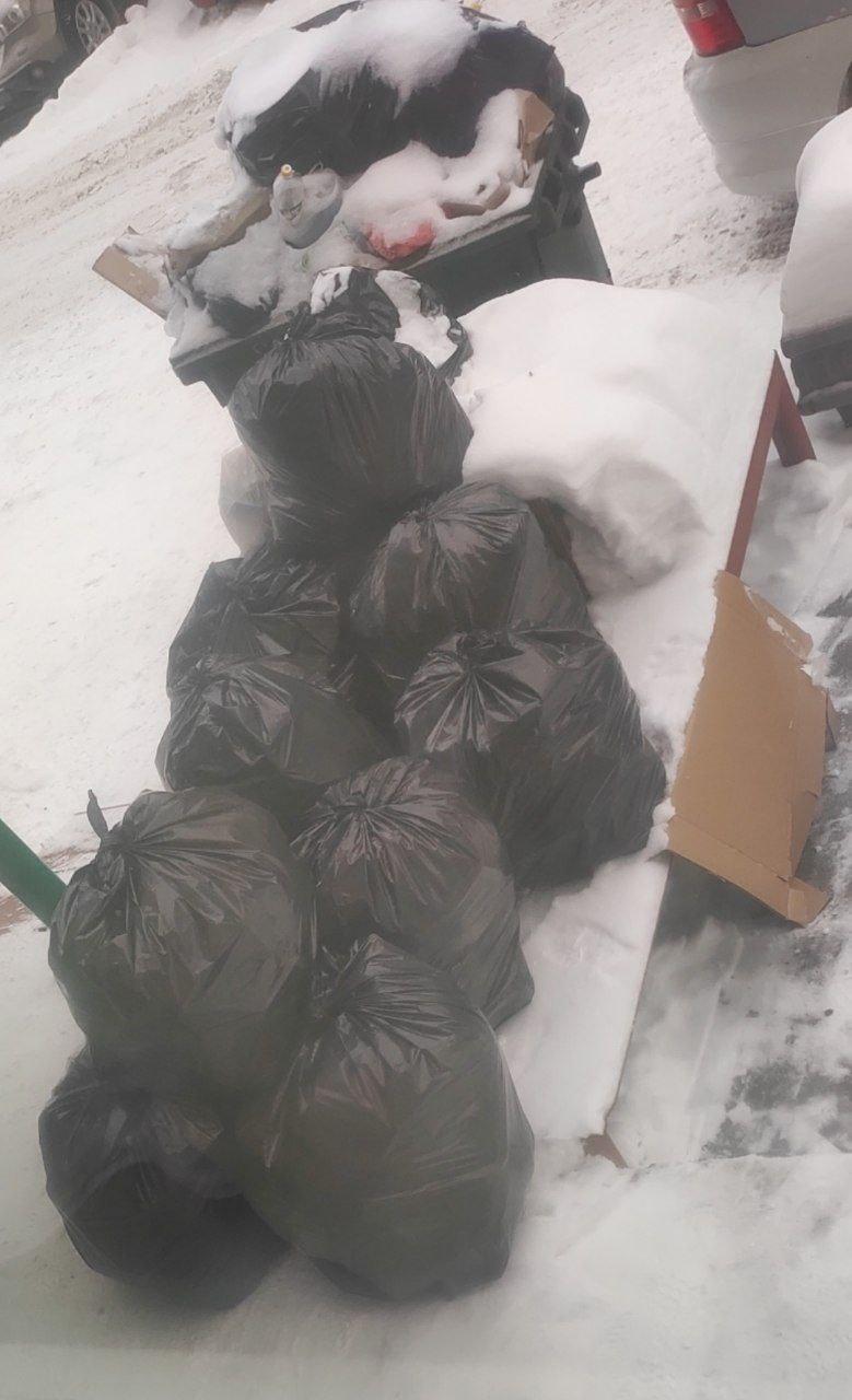 Мария рассказала, что на Терешковой, 6 мусоровоз не смог проехать из-за снега, что привело к навалу отходов.
