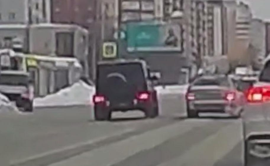 Глава новосибирского отделения Федерации автовладельцев России Вячеслав Ашурков сообщил, что водитель черного Mercedes-Benz Gelendvagen, двигавшегося без государственных регистрационных знаков, совершил пять нарушений Правил дорожного движения.