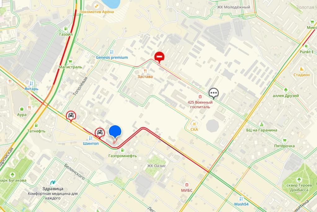 На видеозаписи, предоставленной очевидцем, заметен пар над дорогой и стоящие в пробке автомобили. Согласно данным сервиса 2ГИС, затор образовался на улицах Ипподромской и Покатной. Именно на Покатной авария заблокировала три полосы движения, а на улице Василия Старощука водители предупреждают об отсутствии проезда.