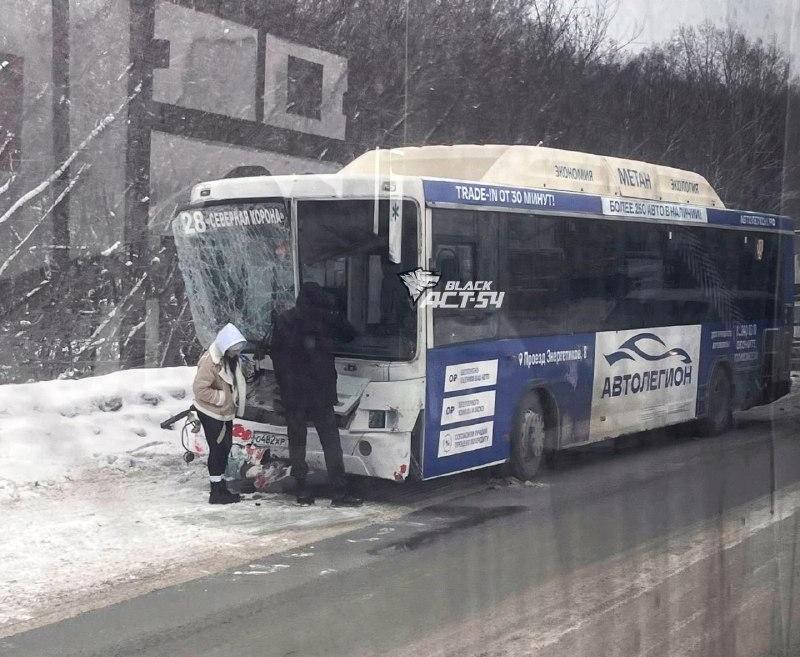 Лобовое столкновение грузового автомобиля с автобусом маршрута № 28 произошло на Толмачевском шоссе в Новосибирске.