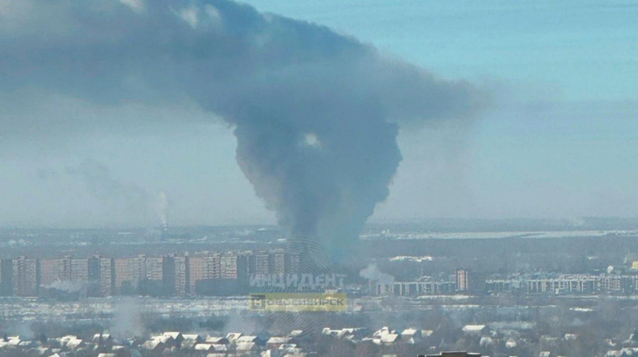 Днем 14 января над левым берегом Новосибирска наблюдали мощный выброс черного дыма, видимый издалека.