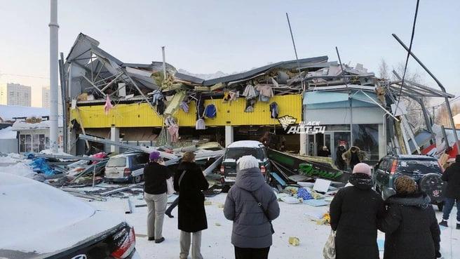 Обрушение ТЦ в Новосибирске на видео