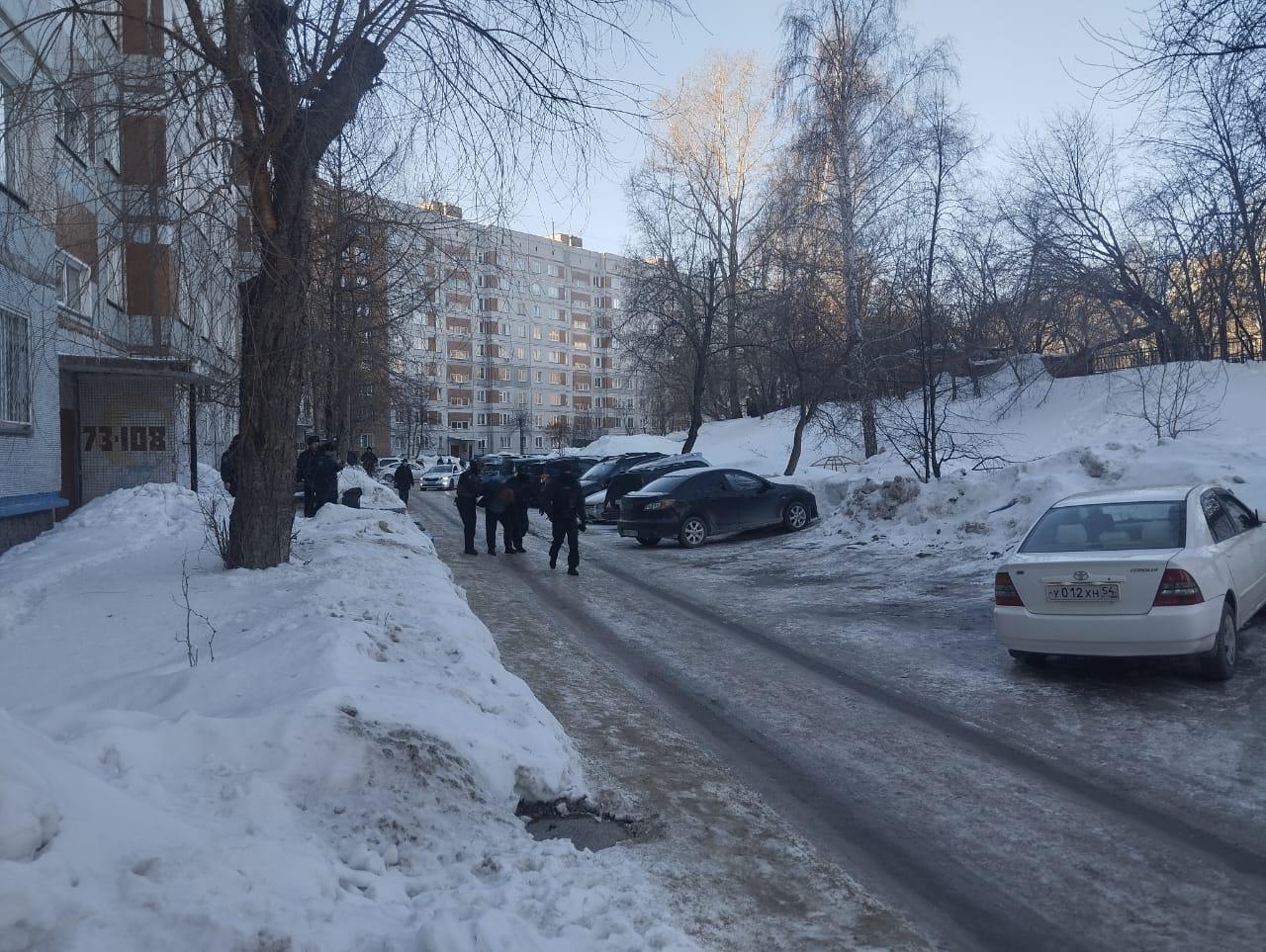 К дому на улице Курчатова прибыли сотрудники различных силовых ведомств.