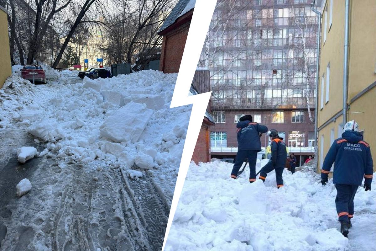 Снежная глыба рухнула с крыши в центре Новосибирска