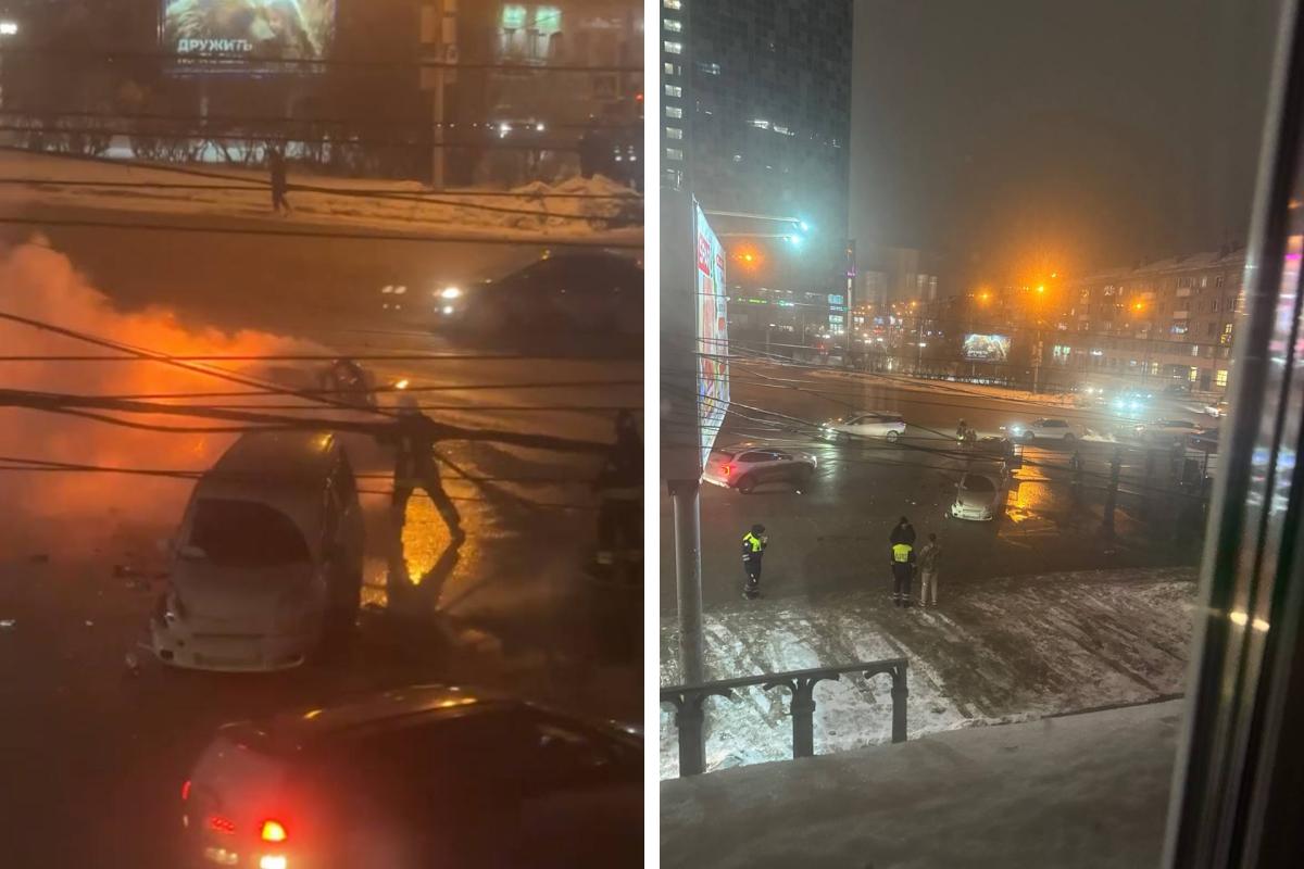 Дорожно-транспортное происшествие с возгоранием машины случилось в Новосибирске в ночь на 17 февраля.
