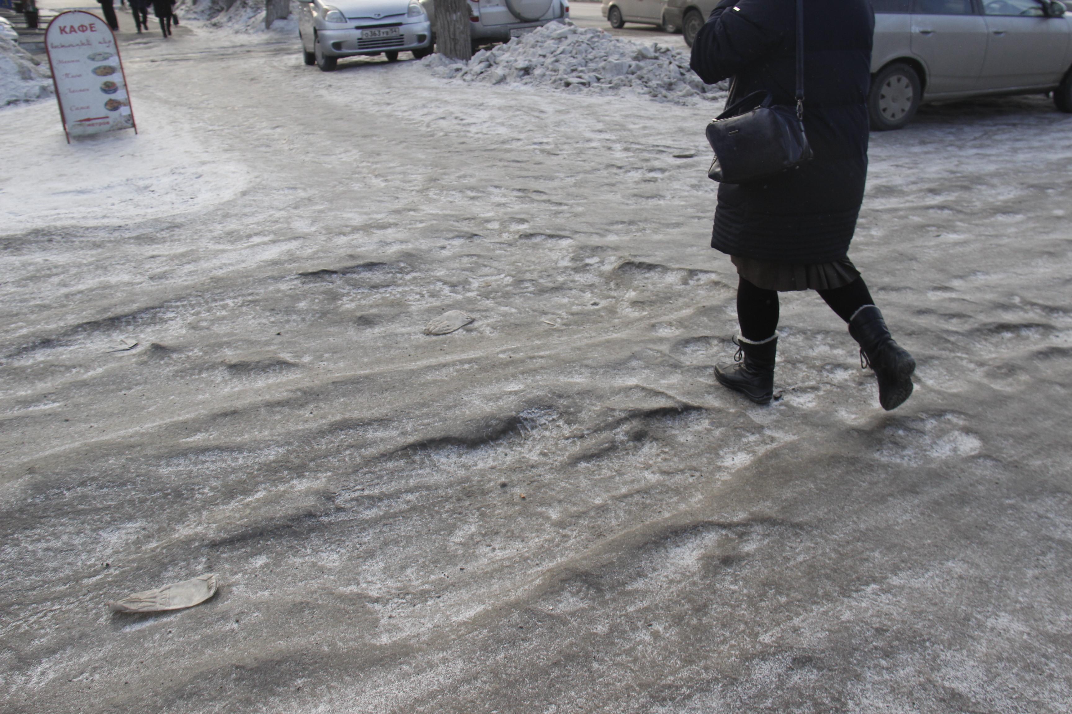 В центре Новосибирска уже произошел серьезный случай: местная жительница упала на тротуаре, получив множественные переломы голени.