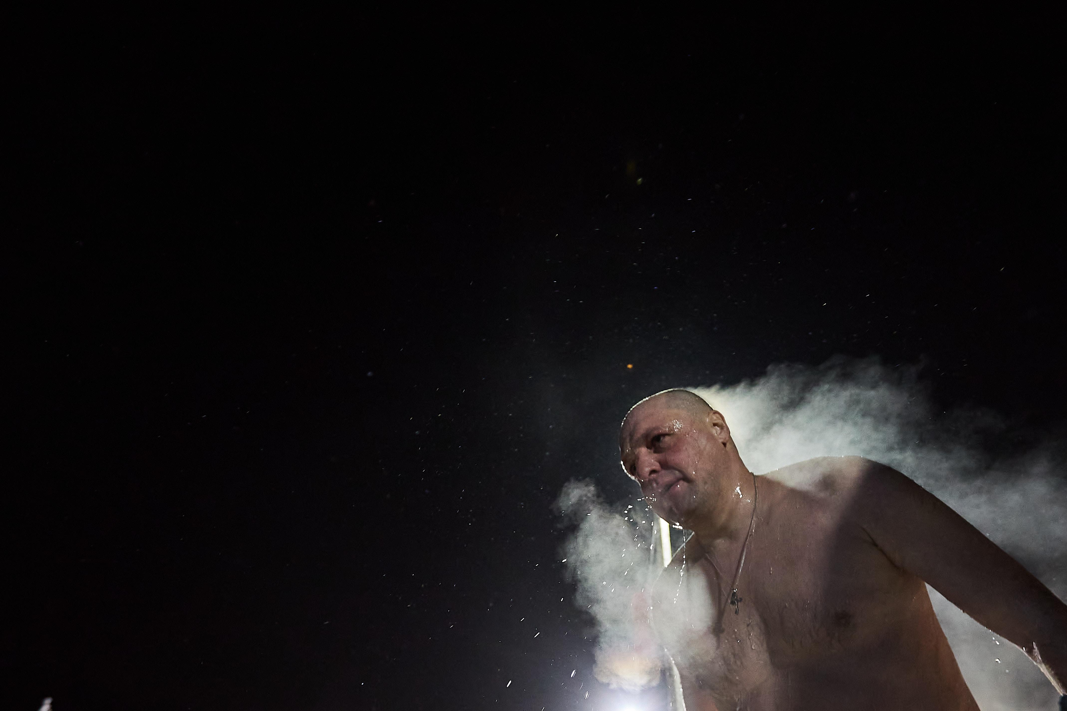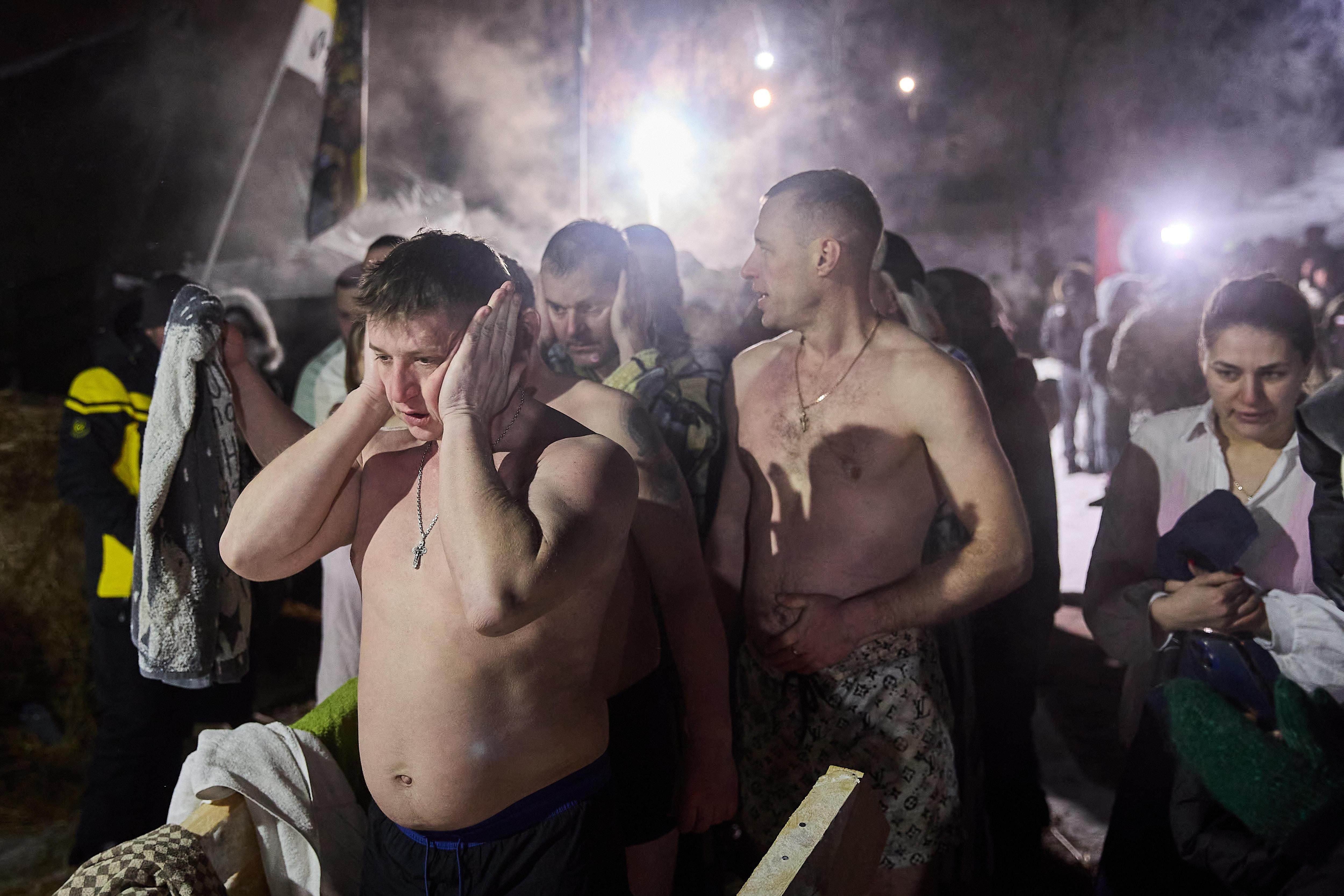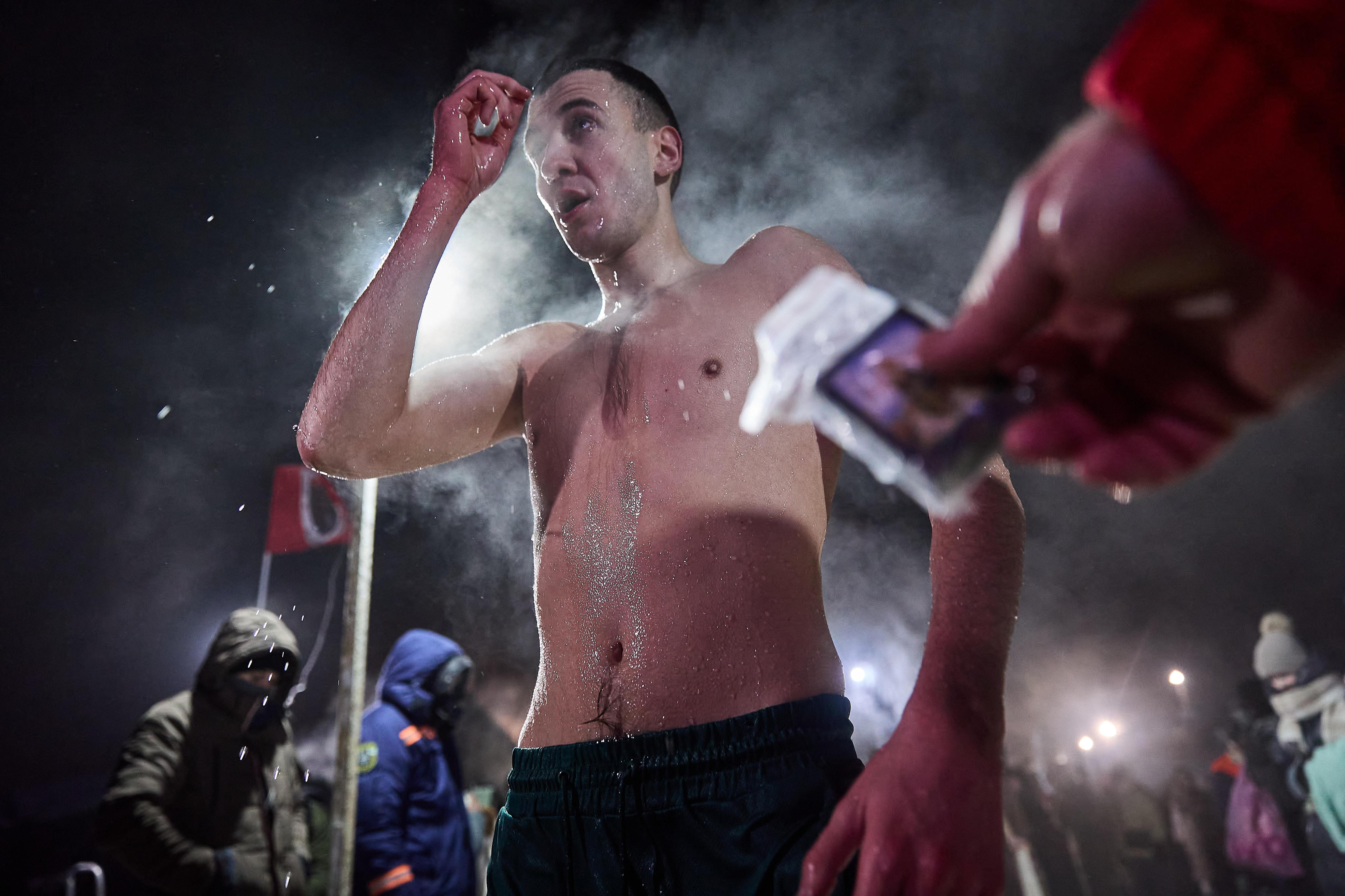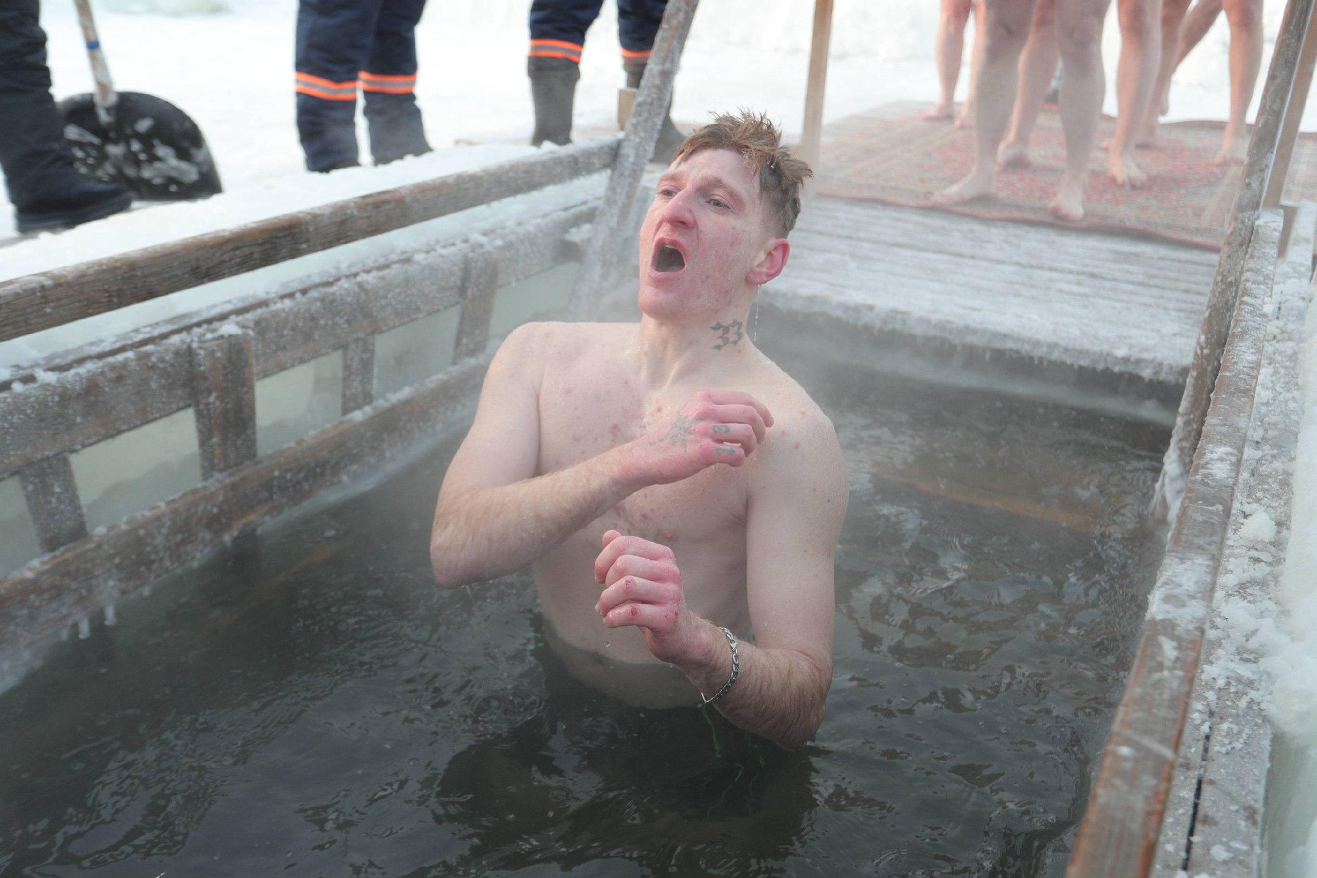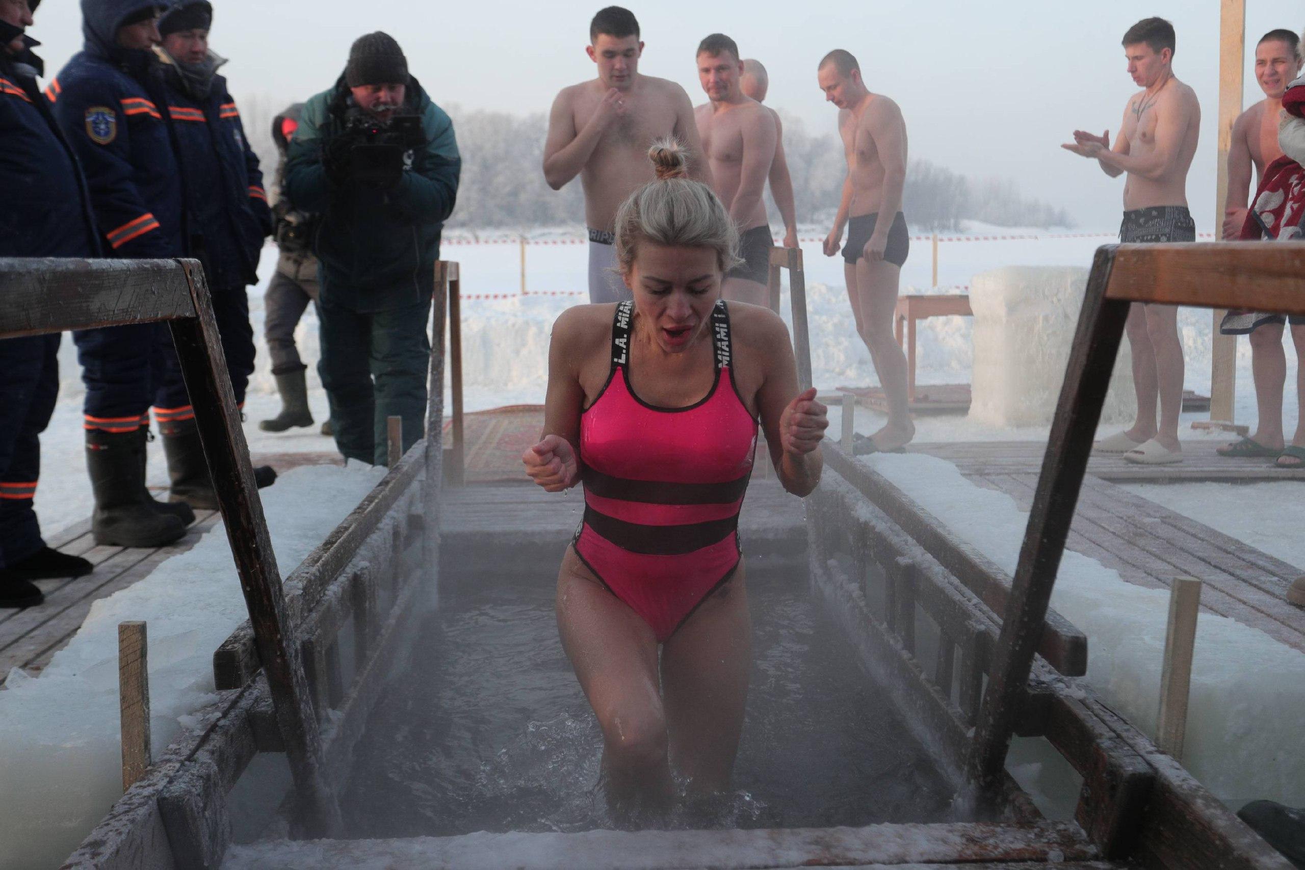 Участники крещенских купаний погружались в ледяную воду при минусовой температуре.
