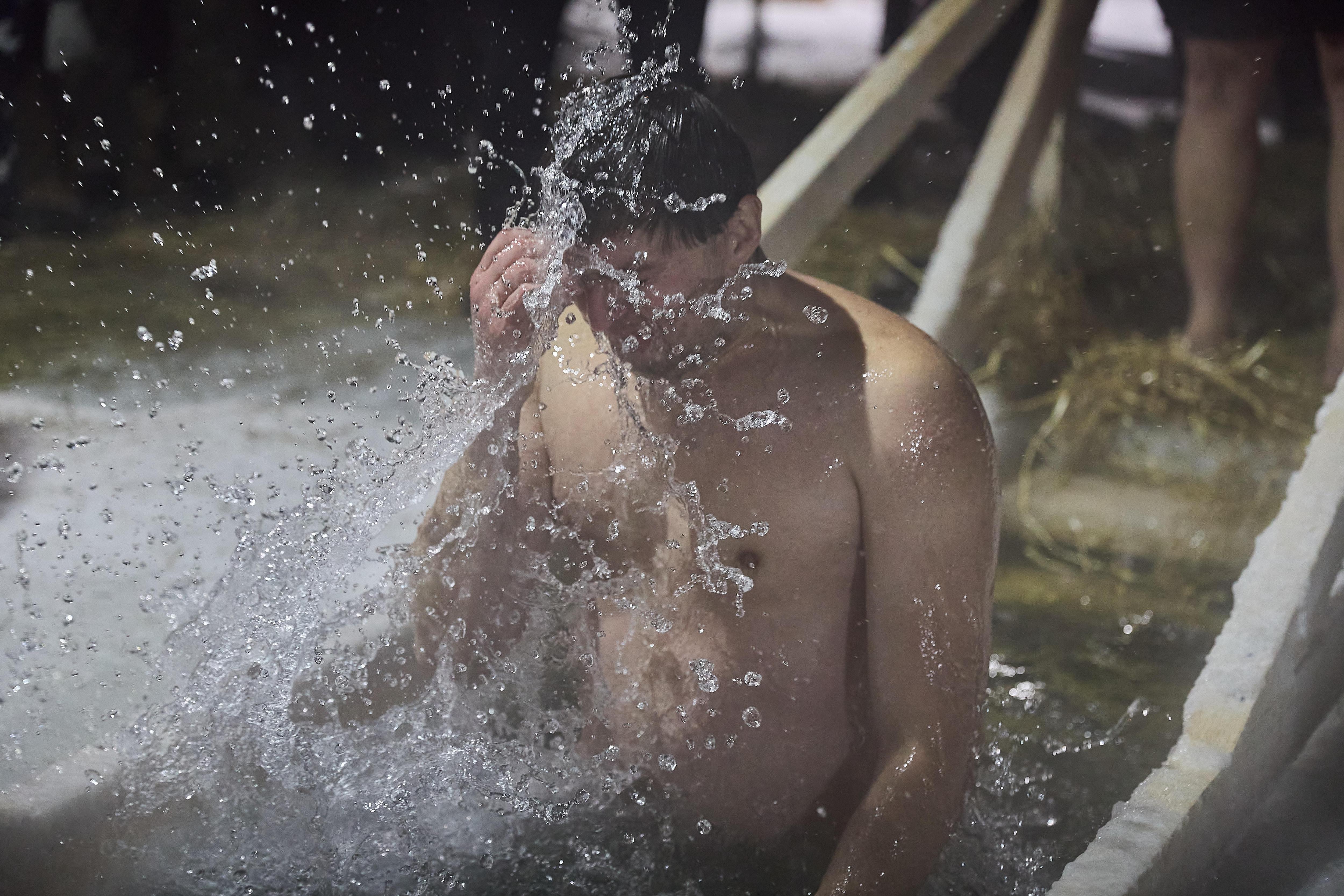 Многие окунались с головой, полностью погружаясь в воду.