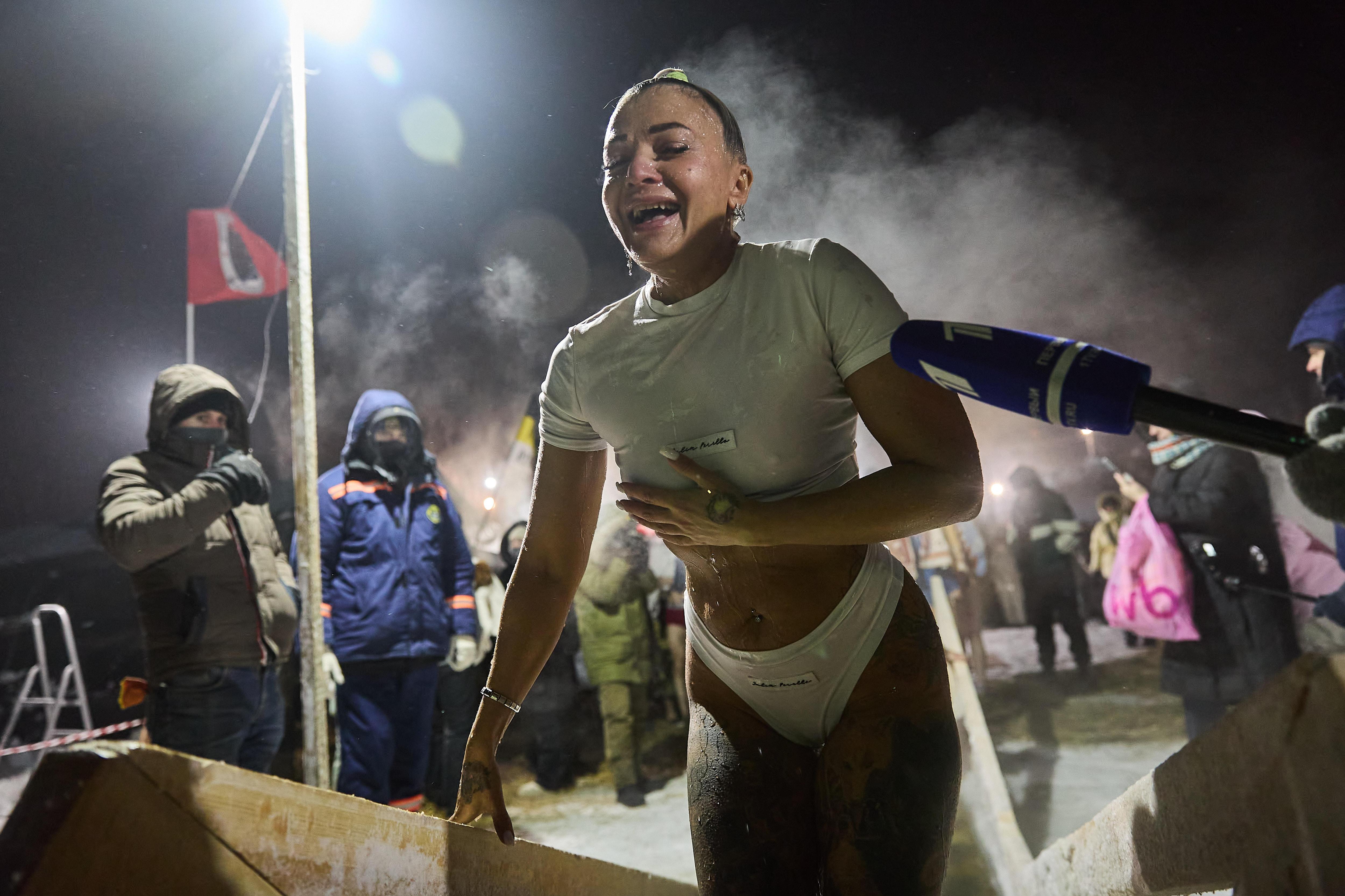 Женщина, окунувшись, испытала яркие эмоции от контакта с ледяной водой.