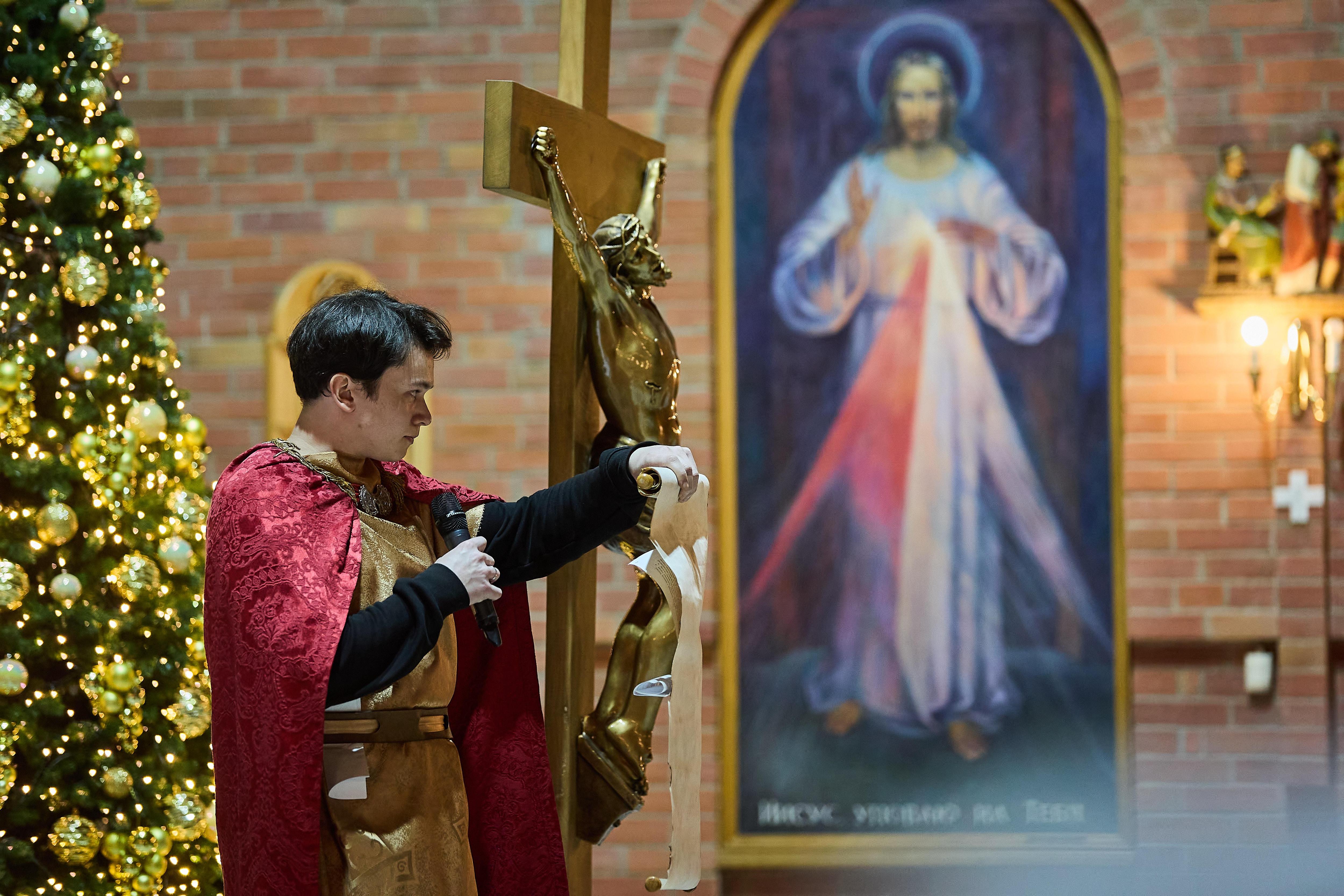 Перед мессой дети разыграли сценку о рождении Иисуса Христа.