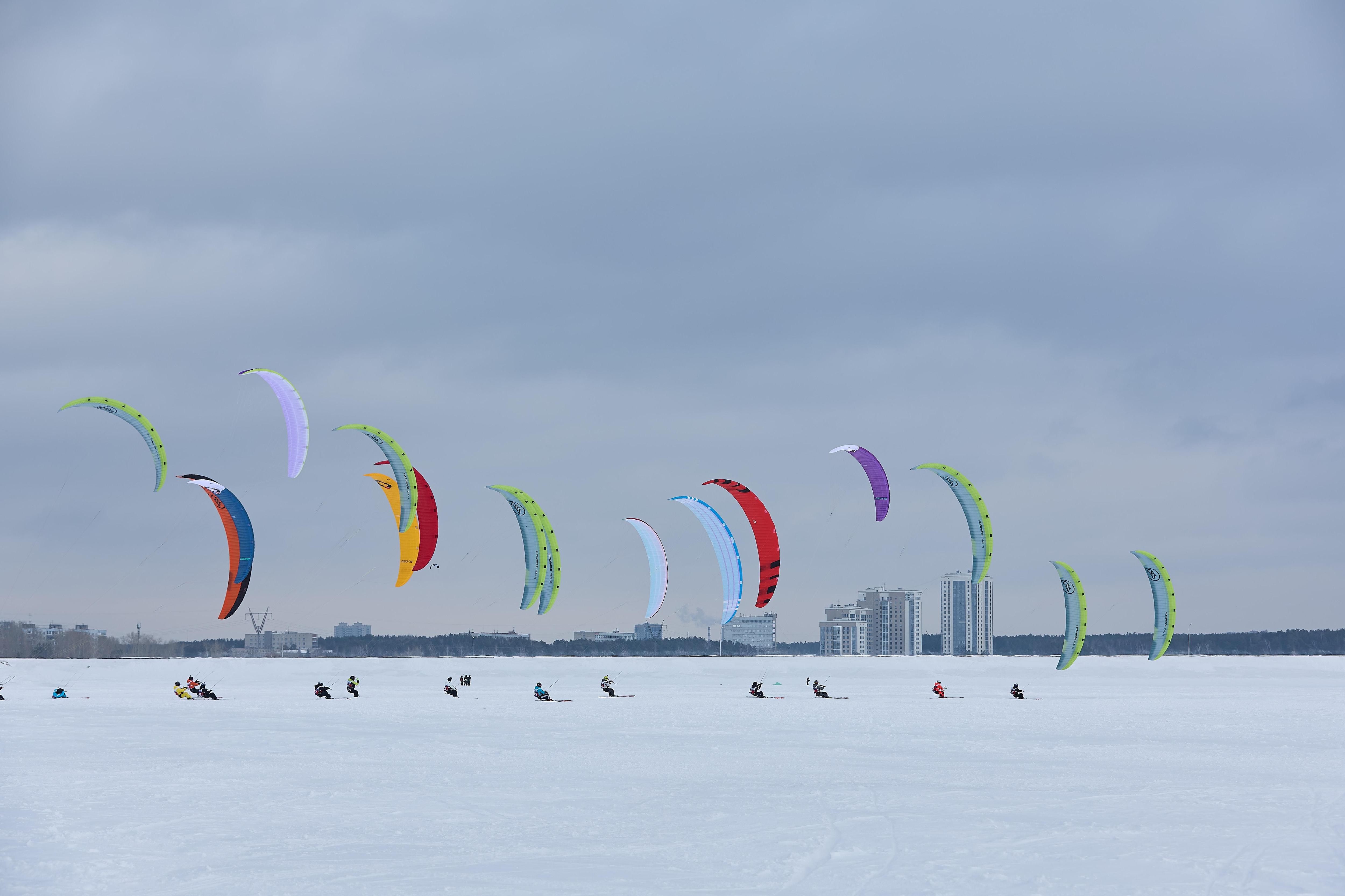 Чемпионат по сноукайтингу на Обском: динамичные соревнования