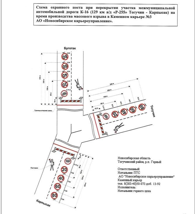 Взрывные работы на карьере «Камнереченский щебеночный завод» потребуют временного закрытия участка дороги К-16 в Тогучинском районе Новосибирской области. Решение об ограничениях утвердило региональное Министерство транспорта по информации Территориального управления автомобильных дорог.