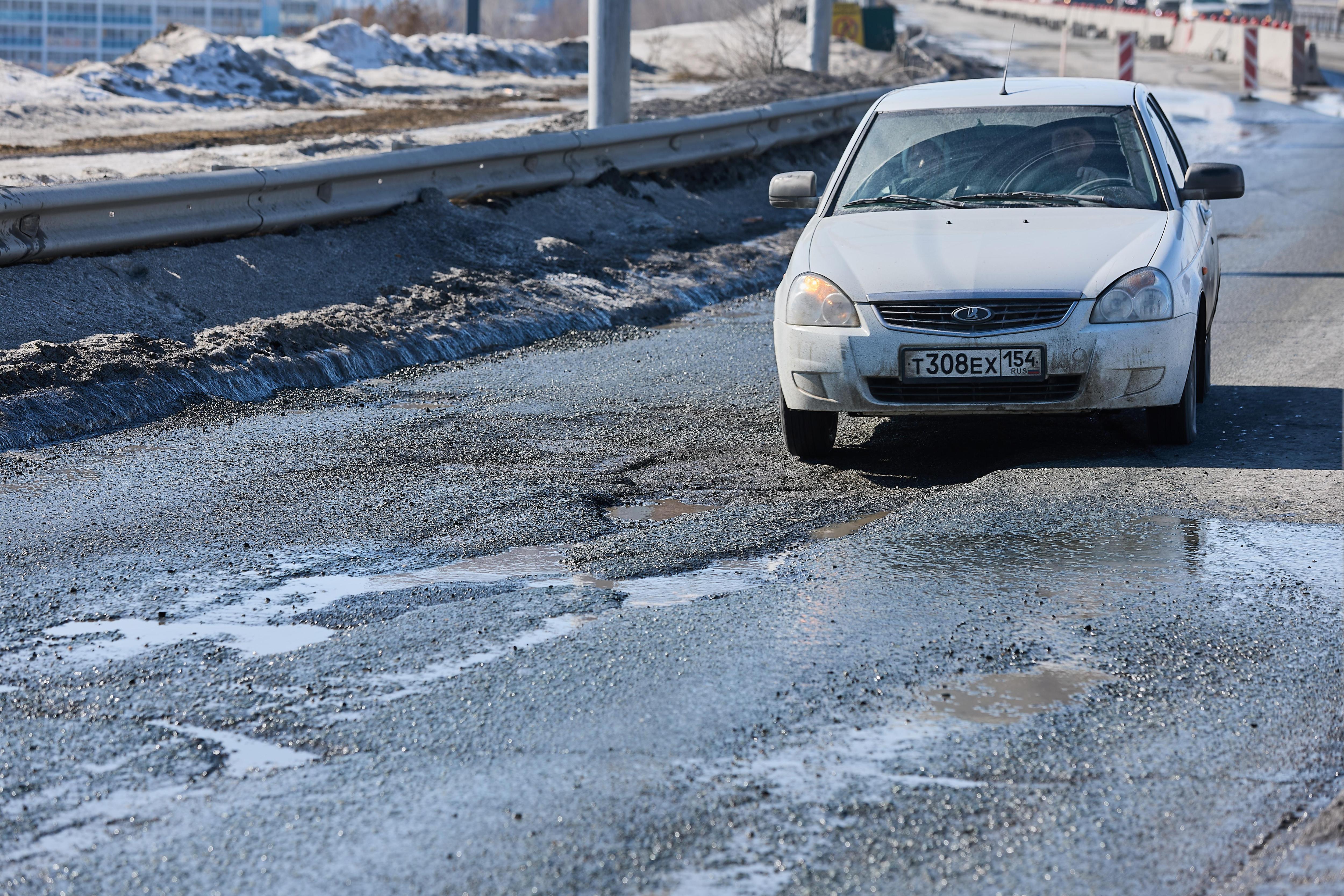 Вместе с тающим снегом разрушается и асфальтовое покрытие.
