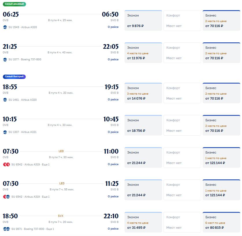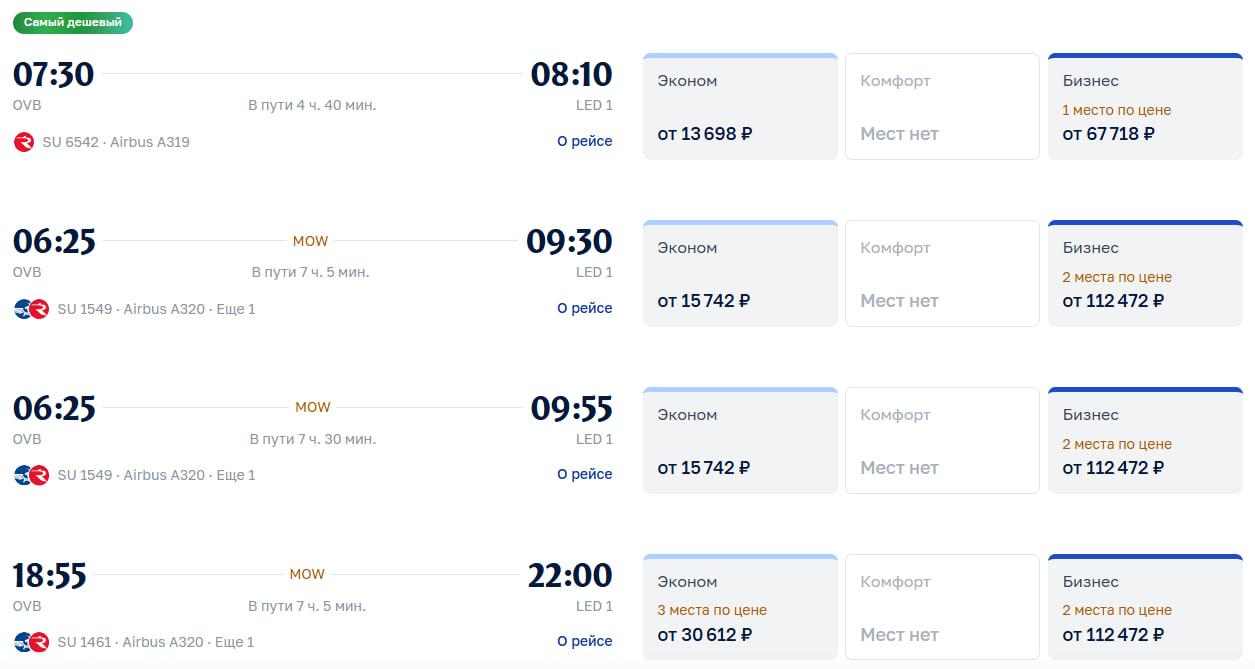 Самые дешевые билеты на рейсы в Москву и Санкт-Петербург из Новосибирска на начало марта стоят менее 10 тысяч рублей.