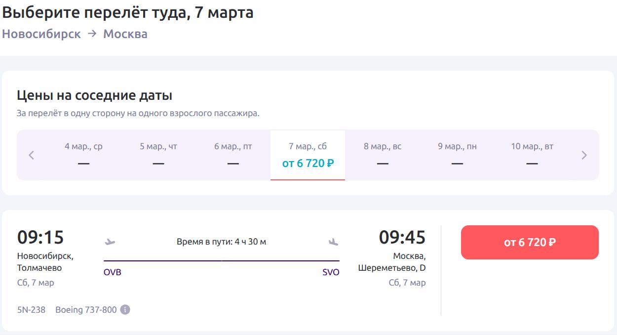 Перелеты из Новосибирска в Москву и Петербург 6 марта: цены