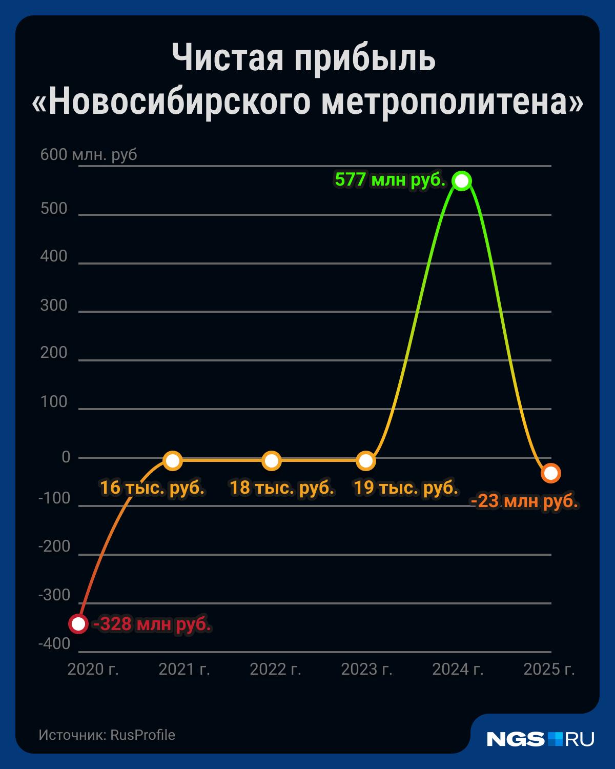 Контраст с 2024 годом особенно заметен: тогда предприятие завершило год с прибылью в 577 миллионов рублей при выручке в 3 миллиарда рублей. По словам представителей мэрии, рост чистой прибыли в тот период был связан с погашением задолженности перед метрополитеном, в том числе за перевозку льготных категорий пассажиров. Увеличение выручки объяснили ростом пассажиропотока и повышением цены проезда.