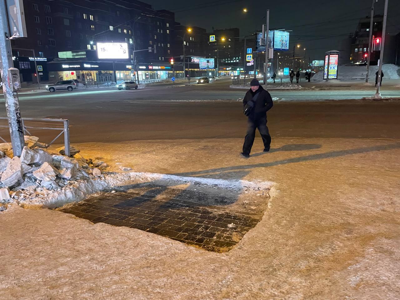 В центральной части Новосибирска на подходах к пешеходным переходам снег сняли ровными квадратами, что сразу обратило на себя внимание горожан.