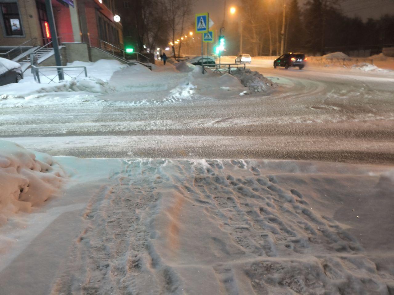 В центре Новосибирска у пешеходных переходов снег убрали квадратными участками, что вызвало вопросы и неудобства.