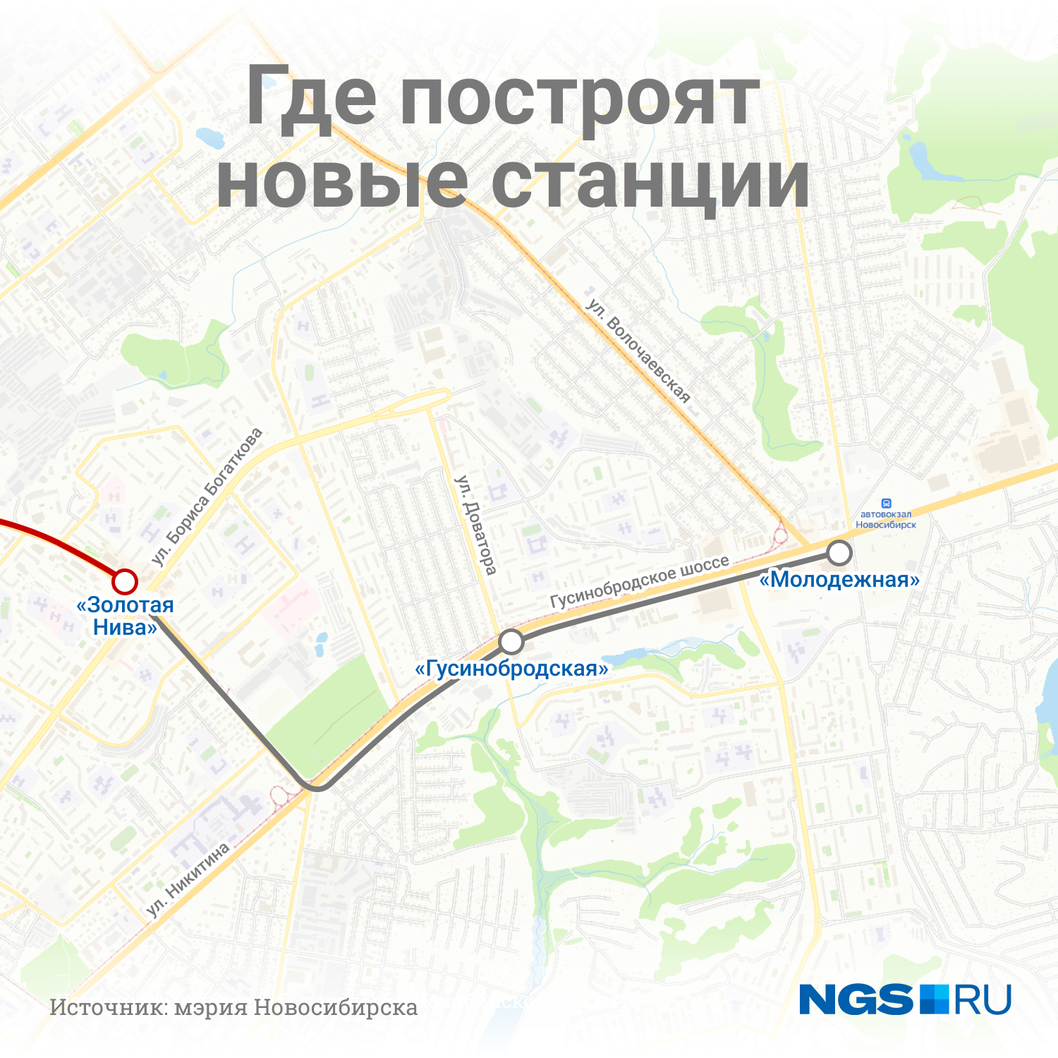 В Новосибирске уже несколько лет ведутся обсуждения о возведении двух новых станций метрополитена — «Гусинобродская» и «Молодежная». Они станут частью Дзержинской линии.