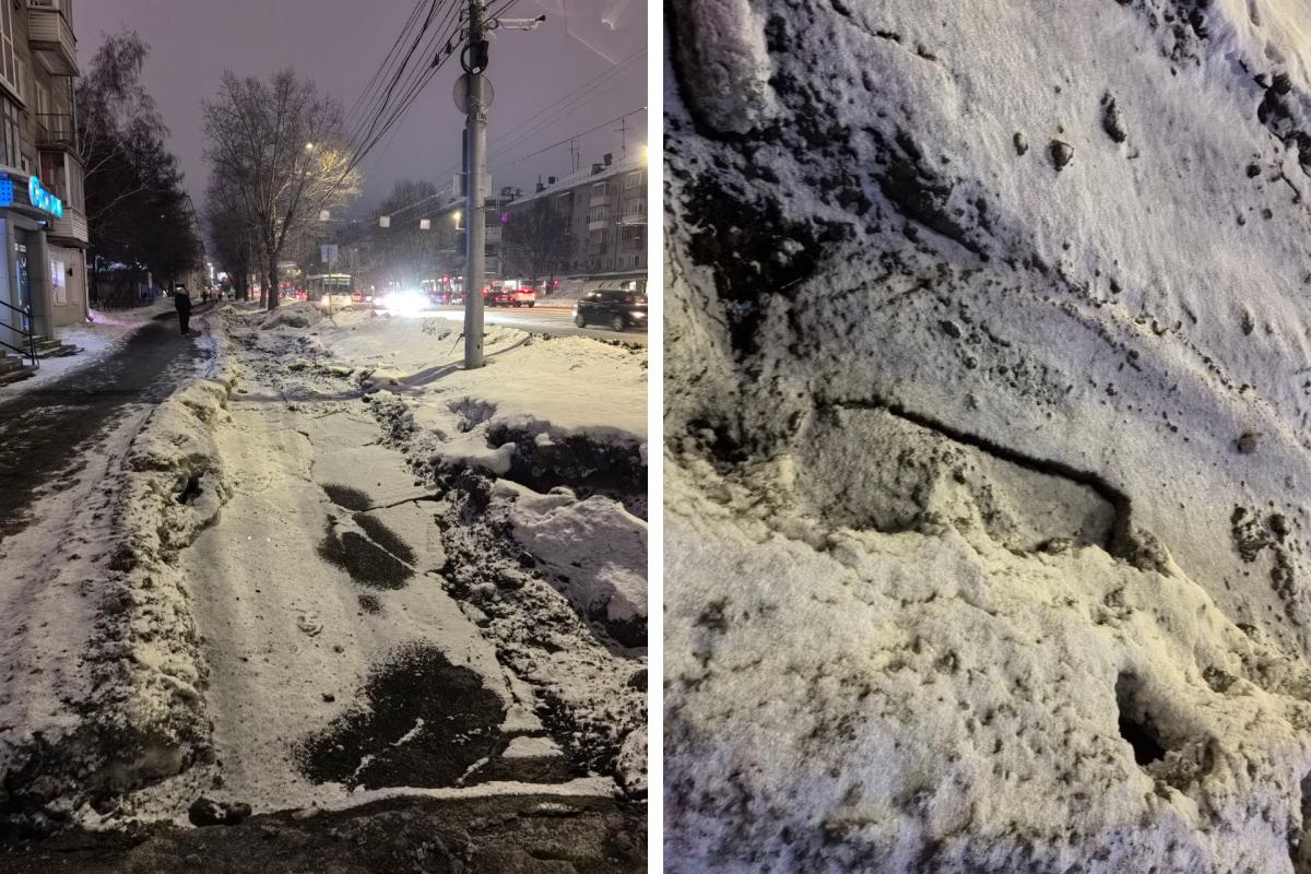 Тротуар на улице Титова в Новосибирске покрылся трещинами