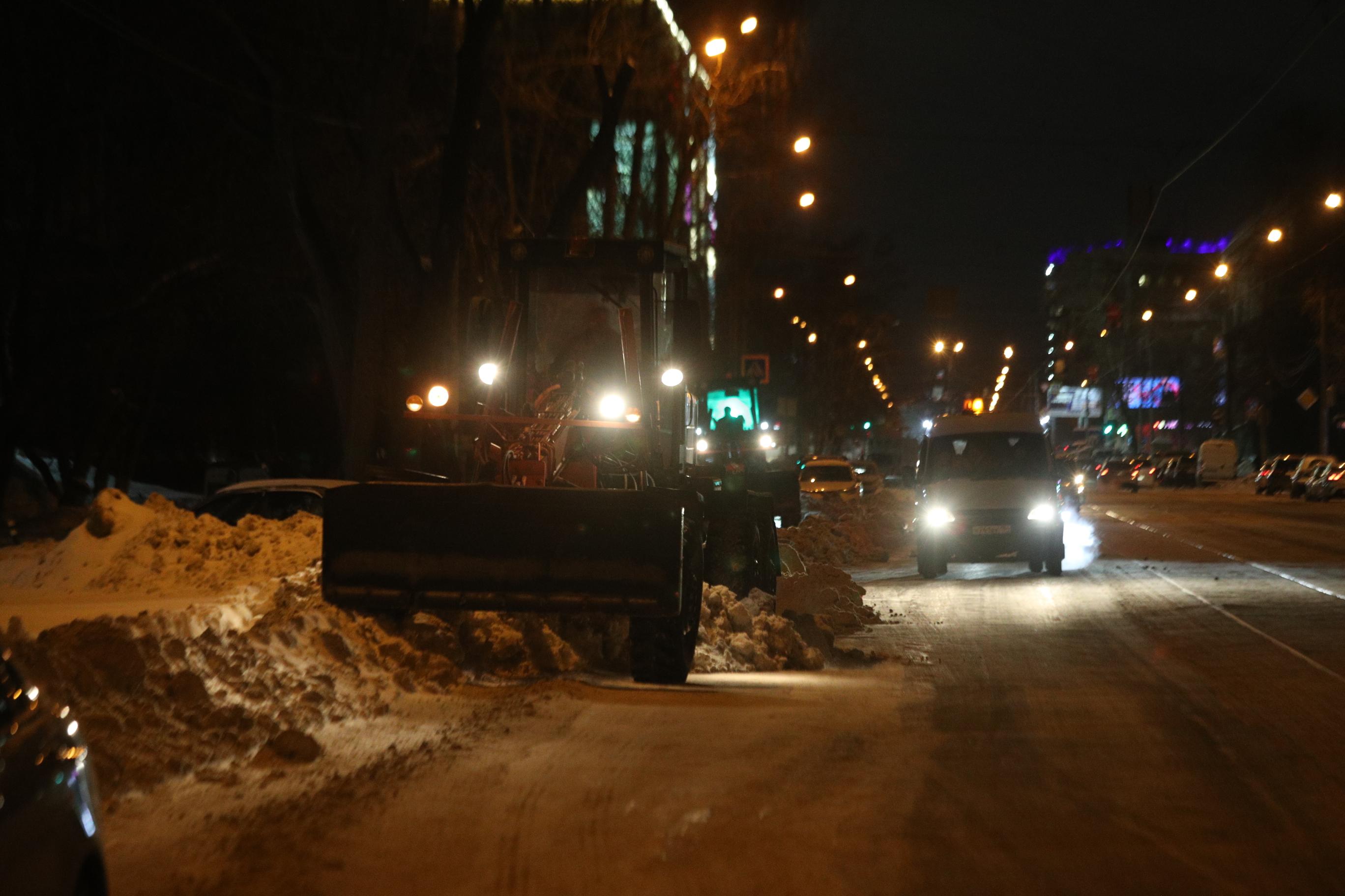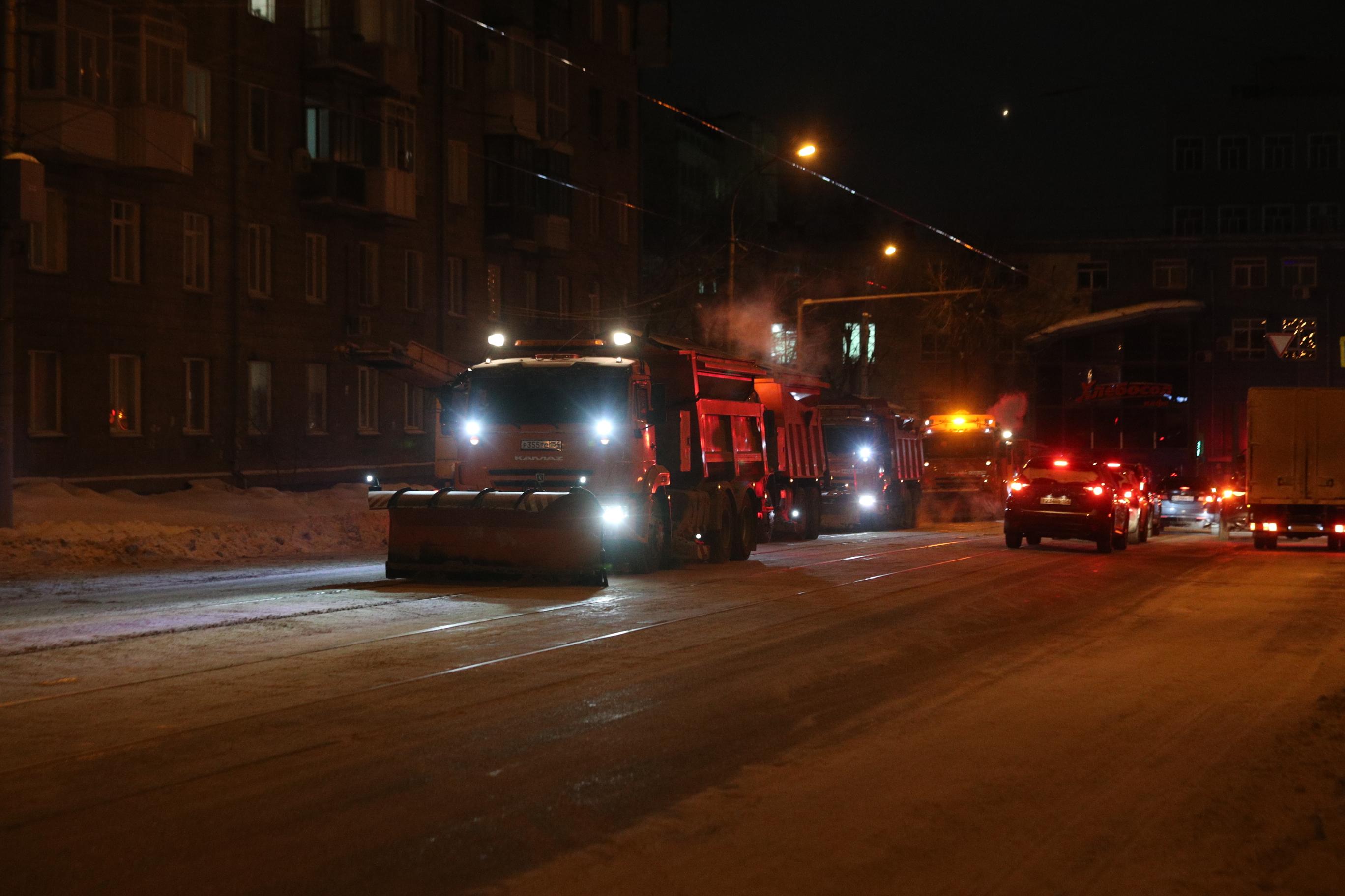Фотограф Андрей Бортко из НГС совершил ночную поездку по Центральному району, чтобы запечатлеть процесс очистки дорог в действии.