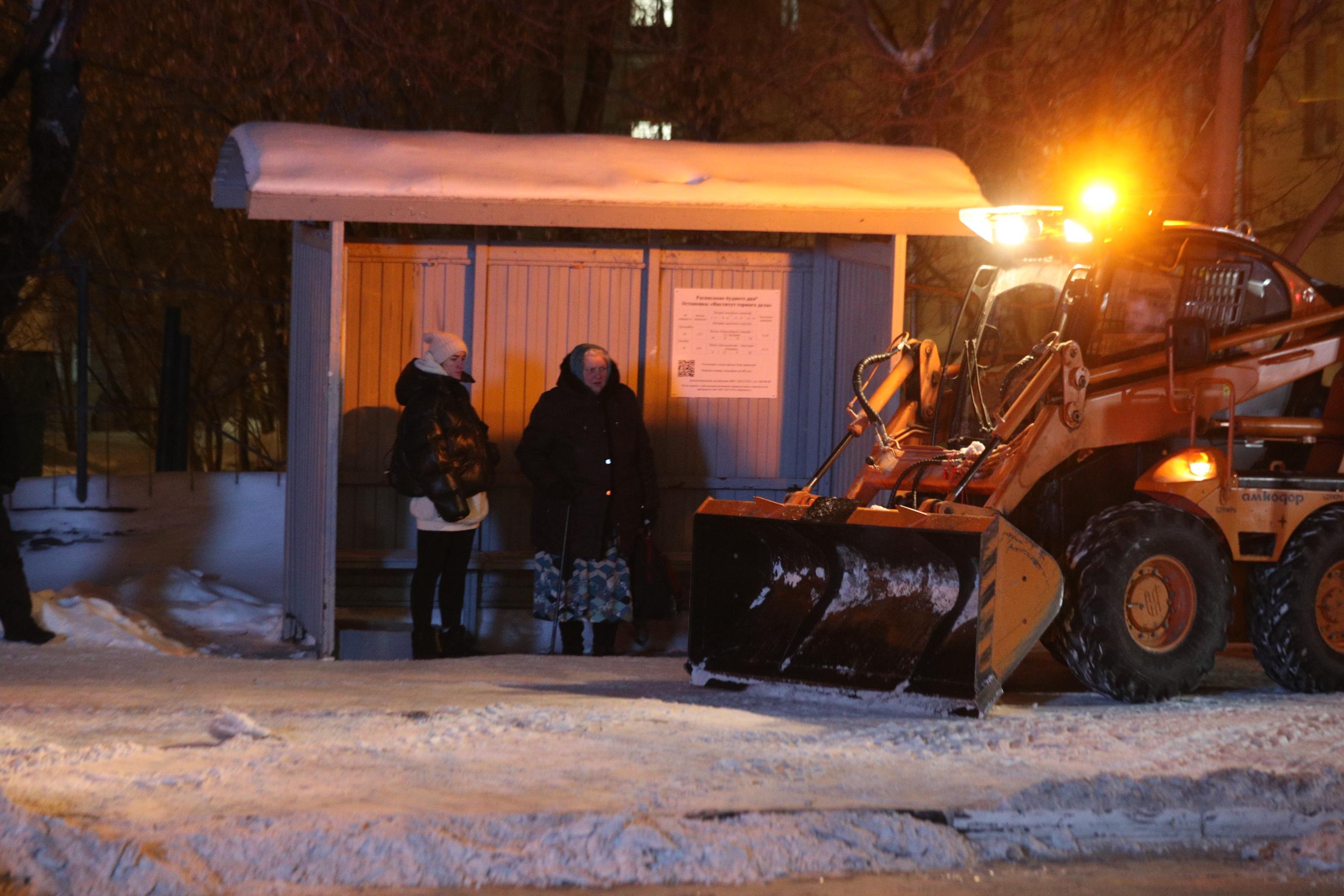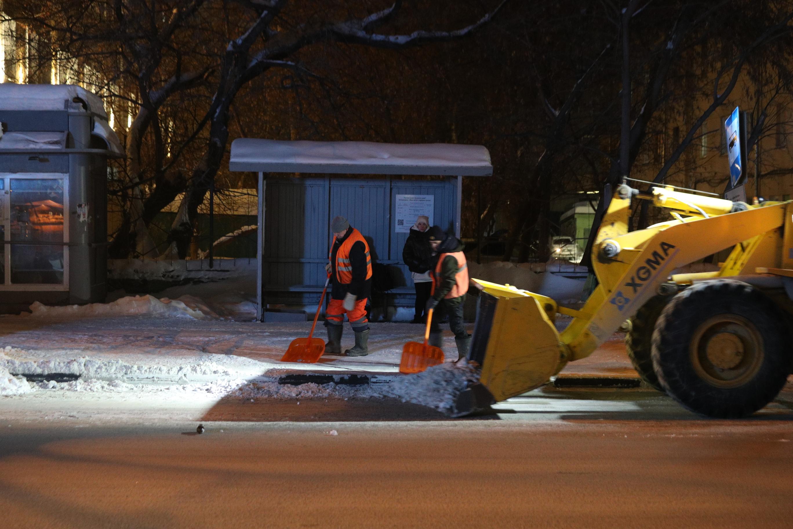 Техника формировала снежные валы, а рабочие вручную зачищали и подметали тротуары.