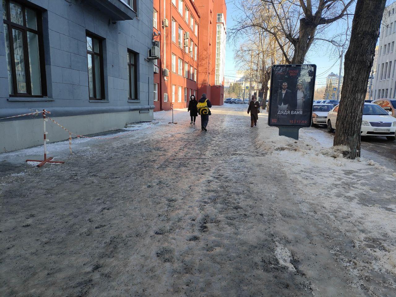 Улица Ленина в центре Новосибирска превратилась в ледяной каток