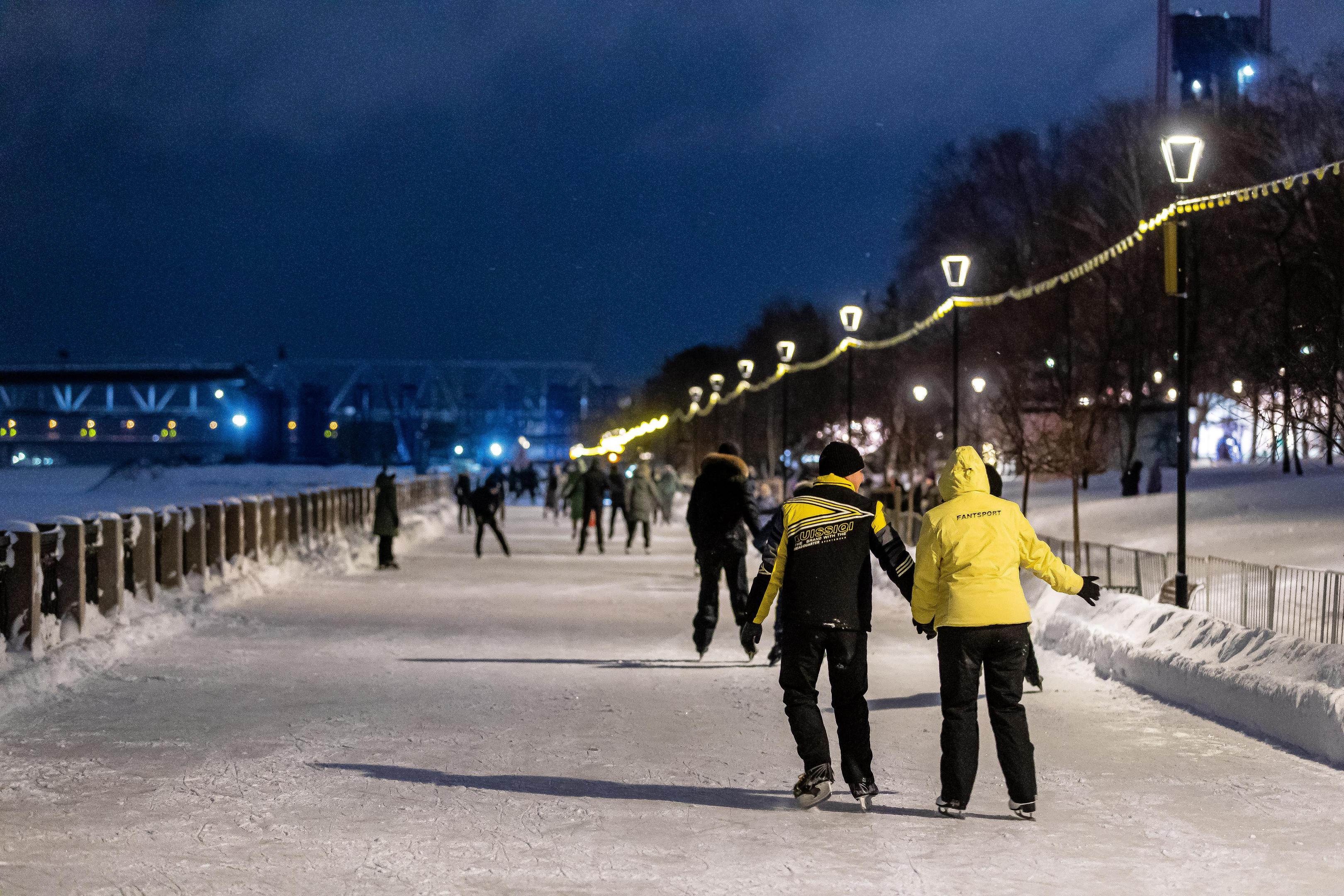 «Здесь есть пространство и для спокойного катания, и для тех, кто любит прокатиться с ветерком. А вид с ледовой дорожки великолепный: на реку, четыре моста, парк „Арена“ с интерактивной елкой и телевышку».